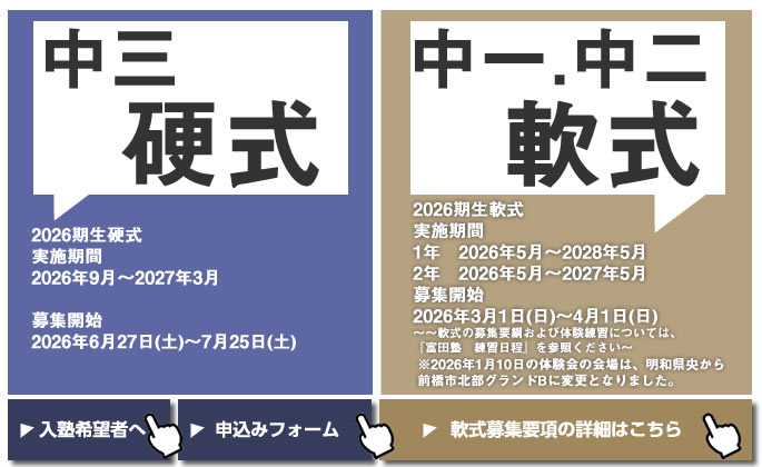 基本テーマは、「継続」と「バカになれ」 。1999年9月、前橋商OBで少年野球の指導者だった富田等 氏が塾生7名で始めた。