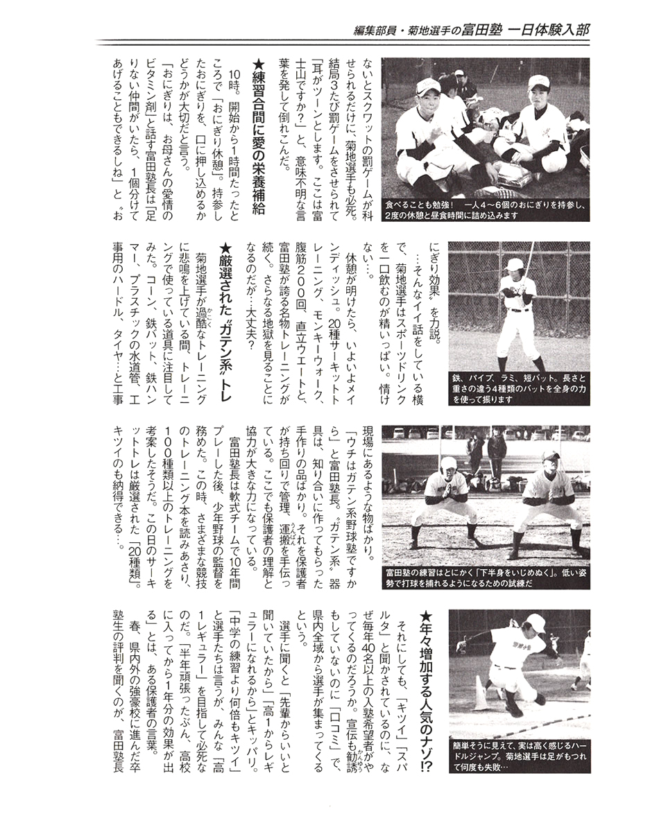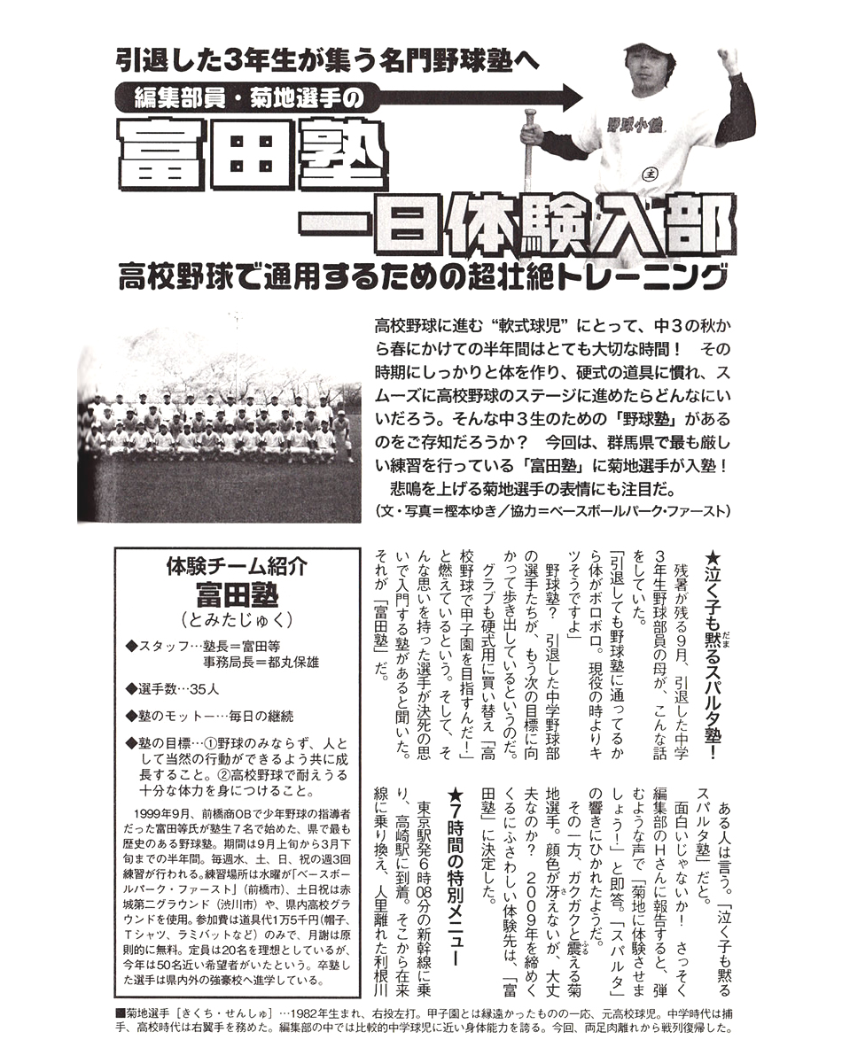 富田塾は群馬県で最も歴史のある野球塾。卒業した塾生は、県内外の強豪校へ進学。その後プロ野球へと進んだ者もいる。