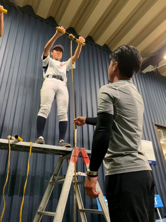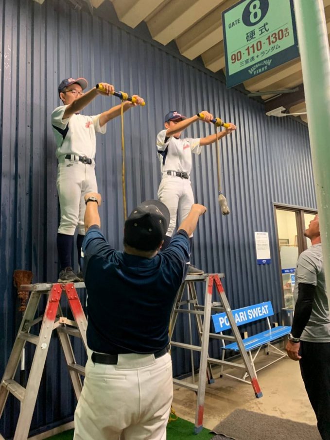 ベースボールパークファーストでの初の水曜練習。準備や練習の仕方などを学ぶ。マシンバッティング、巻き取り、ベンチプレス、ジャンピングスクワット、連続ジャンプ、電気椅子、ハンマー、落下球など、体力強化を図る。