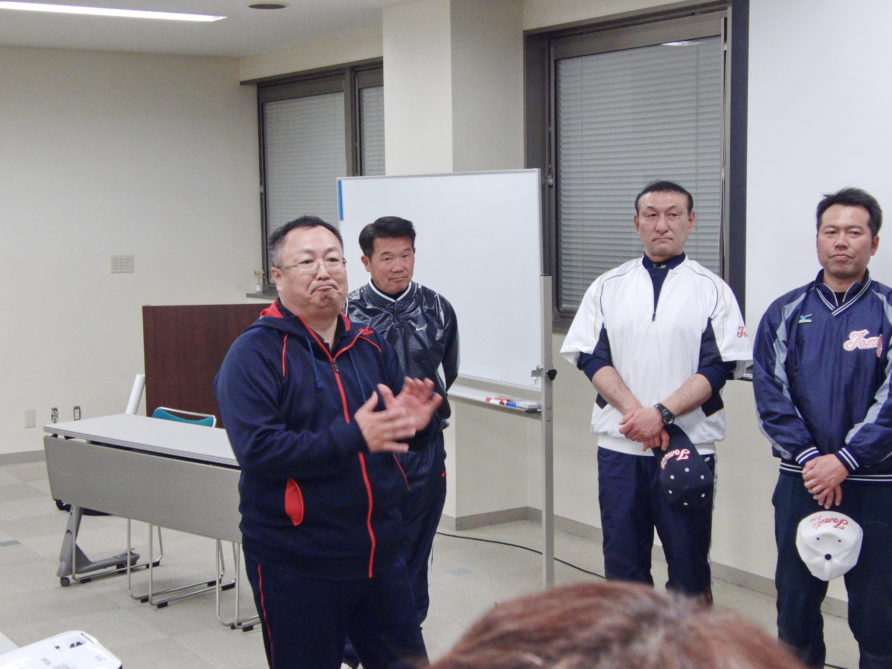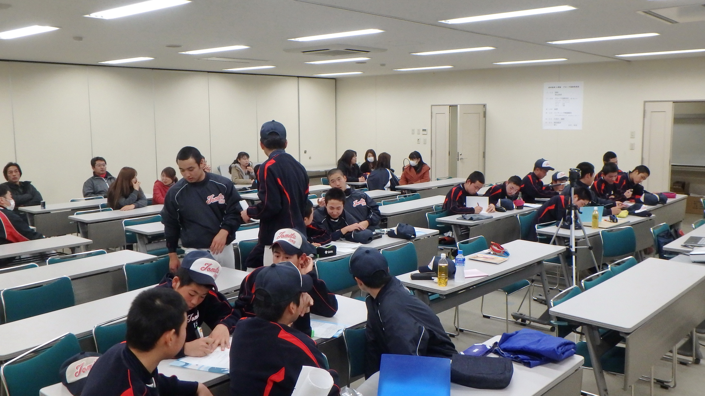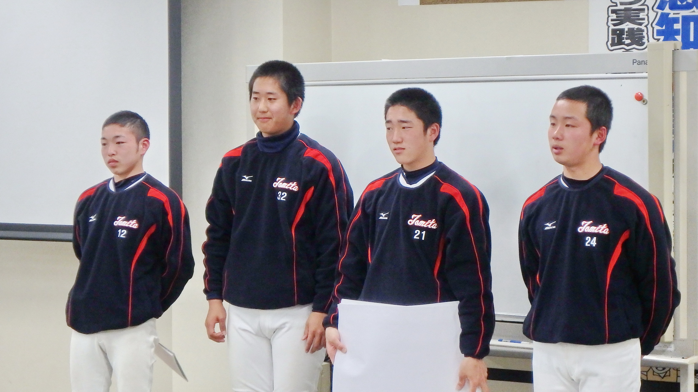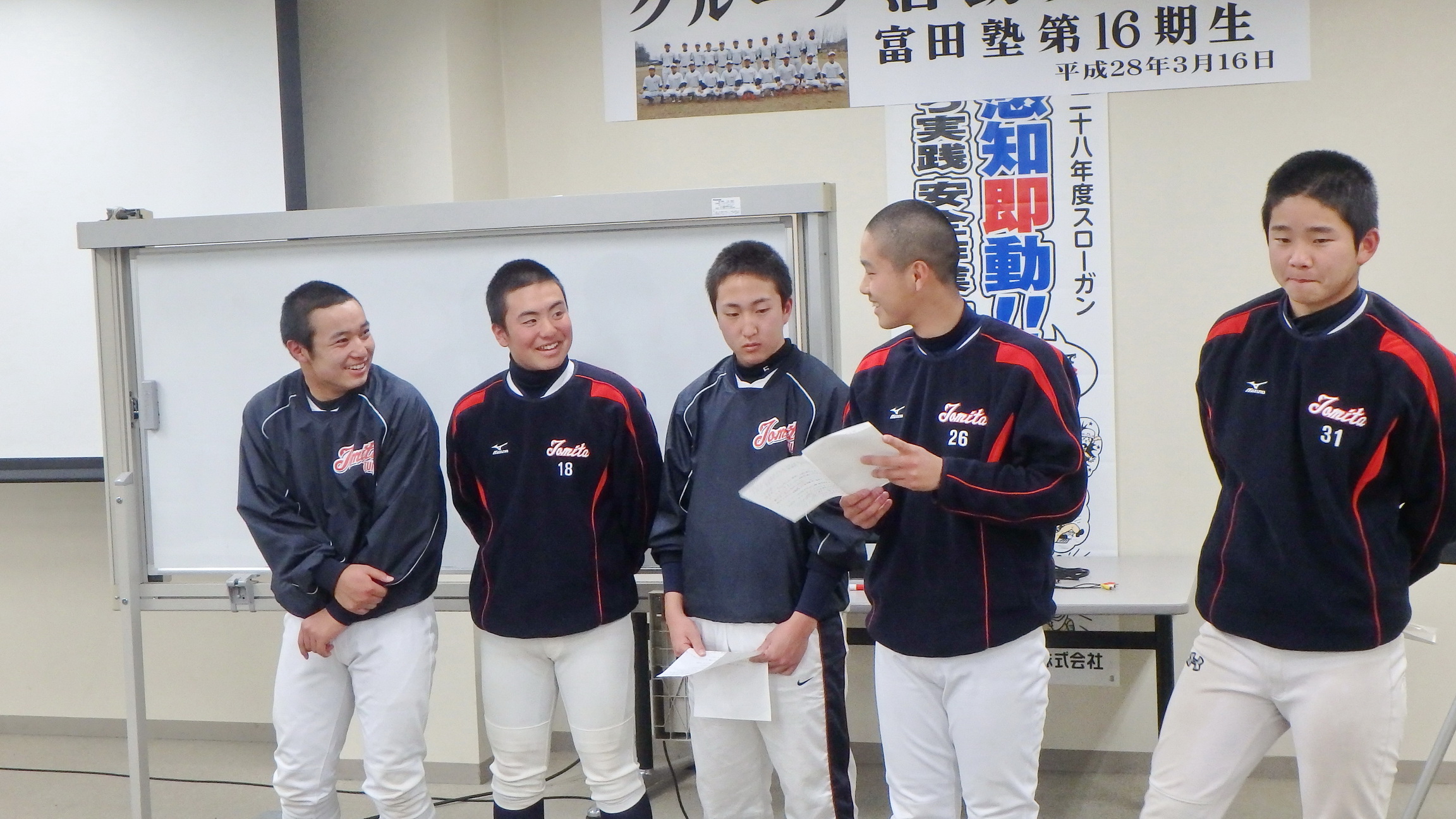 それぞれが工夫をこらし、内容の濃い発表会になりました。その後、都丸事務局長と江崎コーチによる、個々のバッティングフォームのテクニカルコメントがあり、塾生は熱心に聞き入っていました。