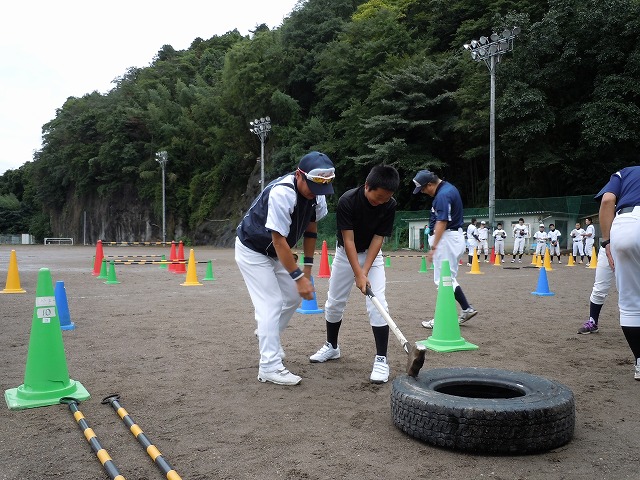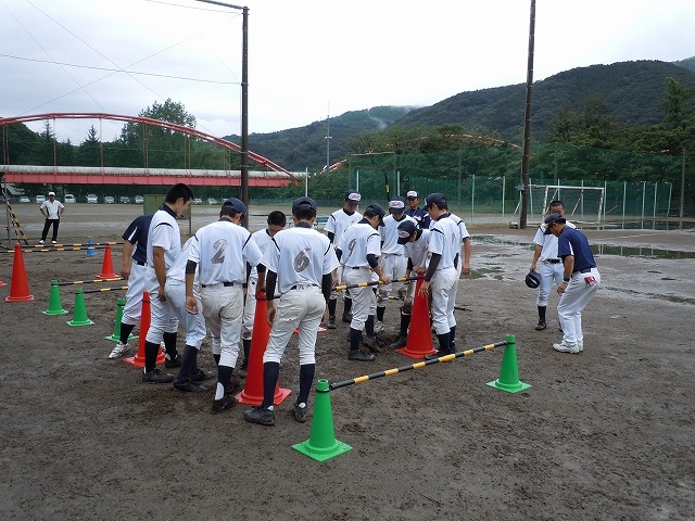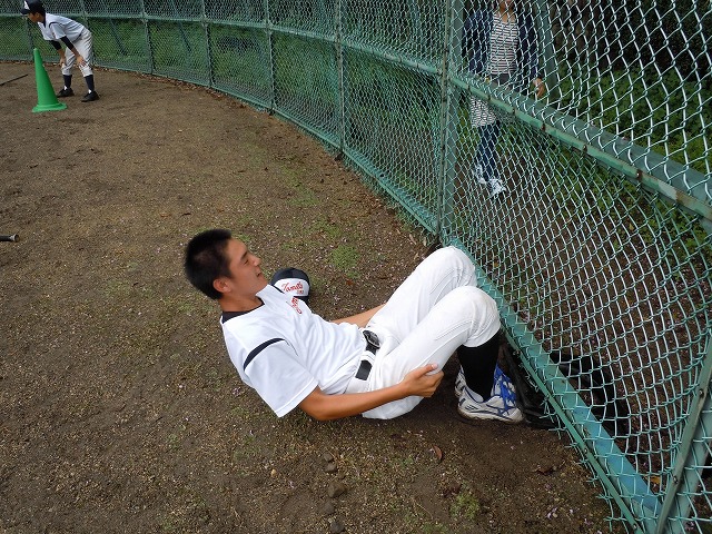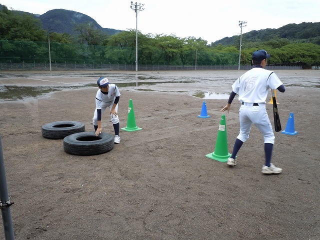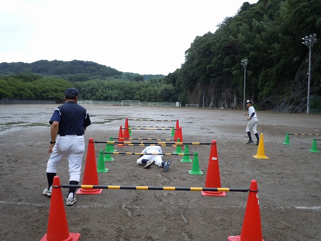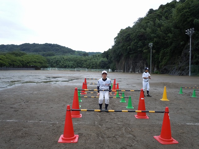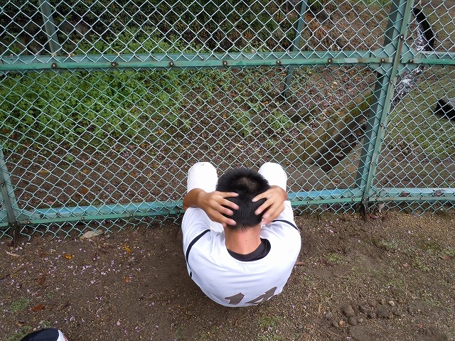 この日は雨。「多少の???雨」ならトレーニングは出来ます(いやいや、結構激しく降ってましたよ。グラウンドはぐちゃぐちゃ)。悪条件のときに出来ることを見出し実行します。怪我もしかりで、怪我をしている塾生はこの日、ひたすら腹筋です(マジで一日中)。塾生達にはそんな悪条件や逆境のときにも自らプランニングして行動に移せる選手になって欲しいなぁ~。