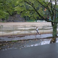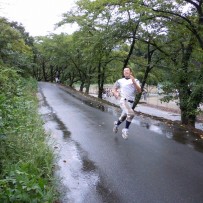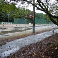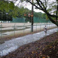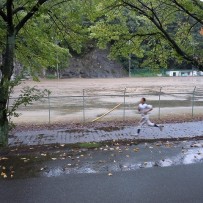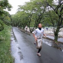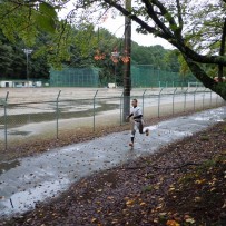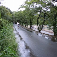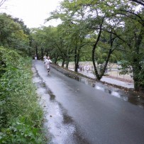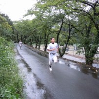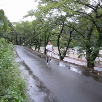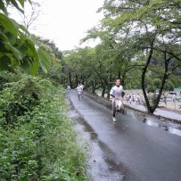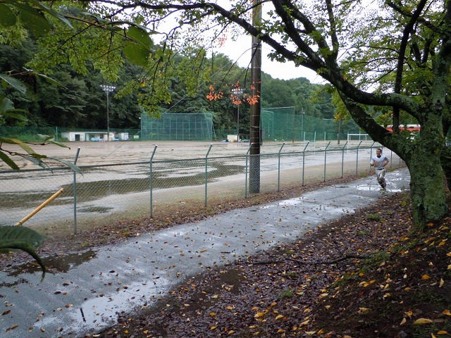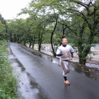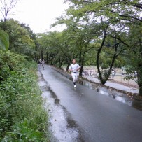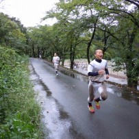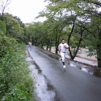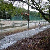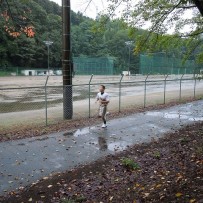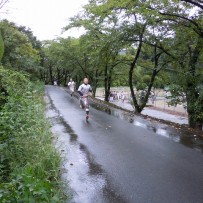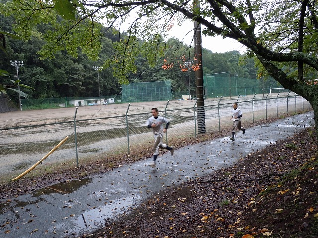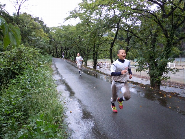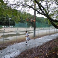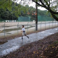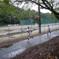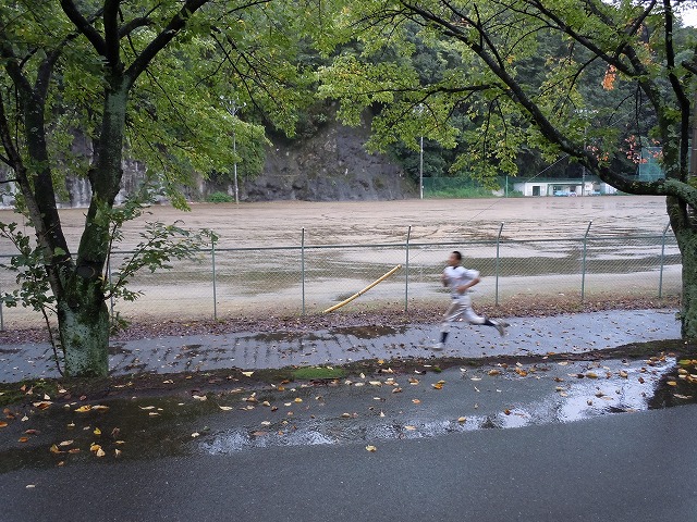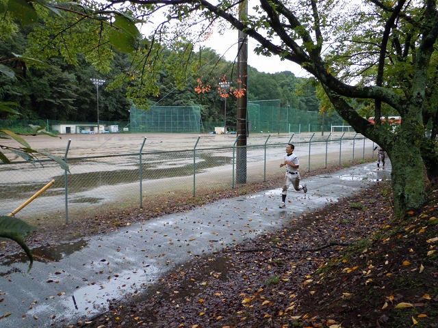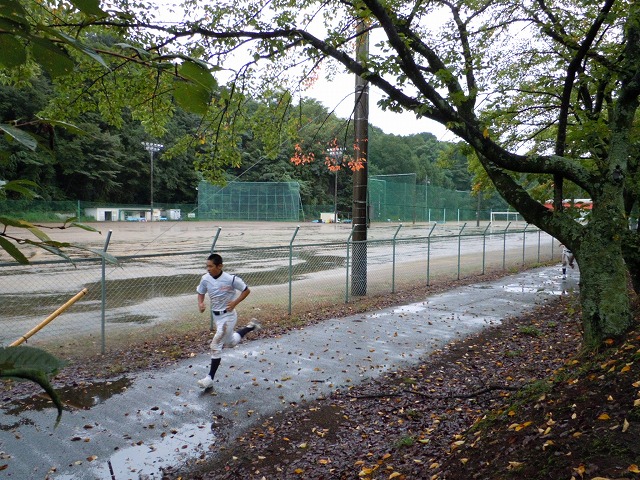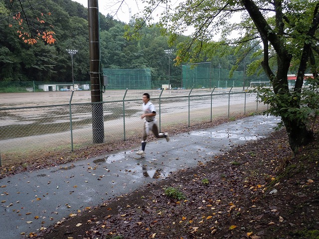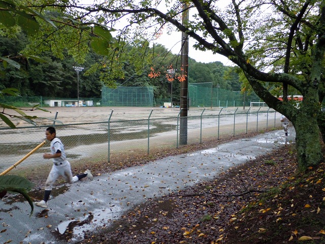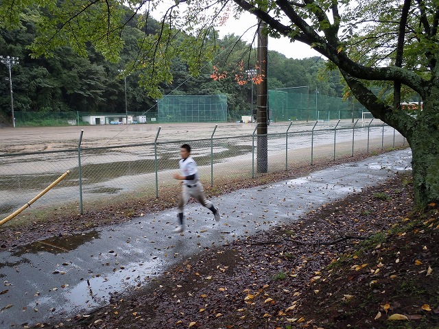 午後は雨が激しさを増してきました。場所をグラウンドの外に移しての走り込みです。