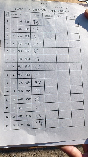 さて、この日は初回の「シャトルラン」がありました。それぞれの記録を用紙に会長が記載してくれています。回数を重ねて記録を伸ばしていくであろう塾生たちに期待しています。(記録用紙も写真UPしますね)