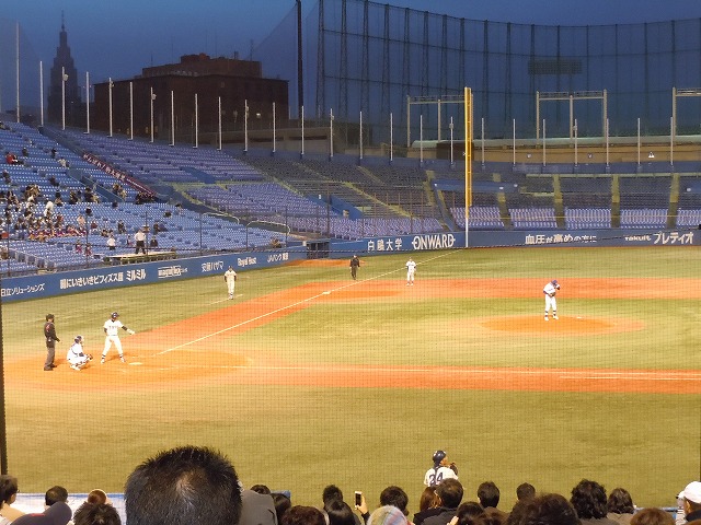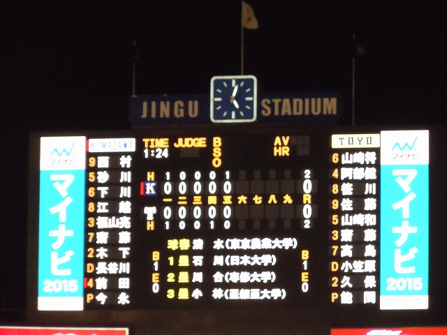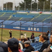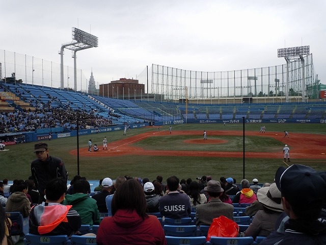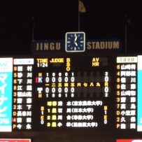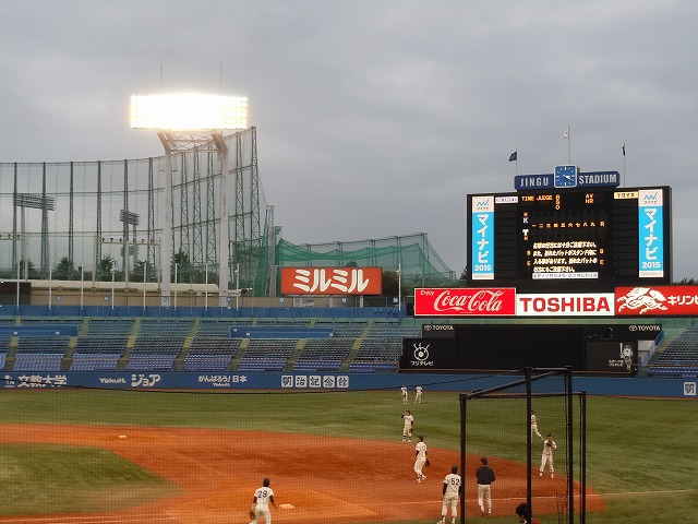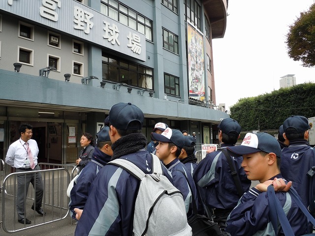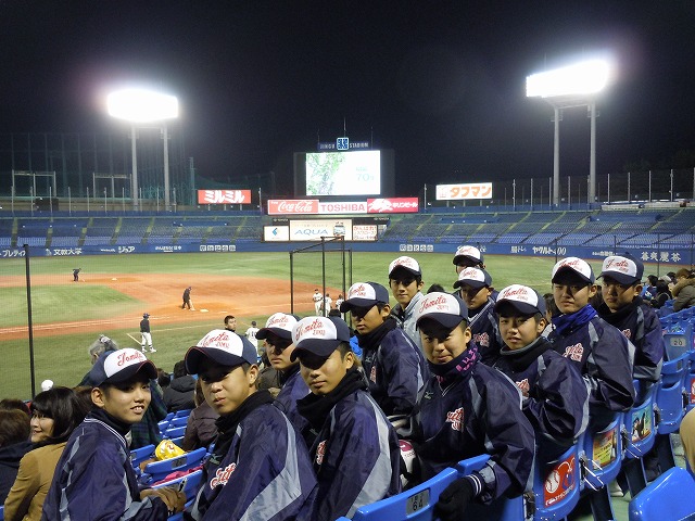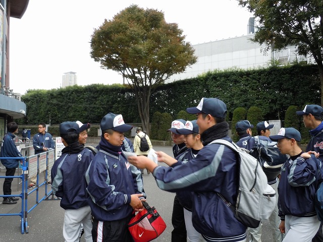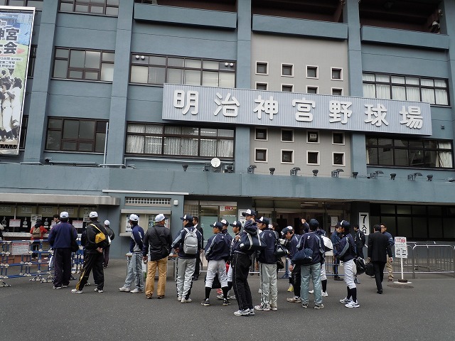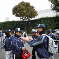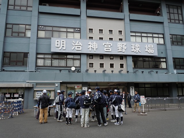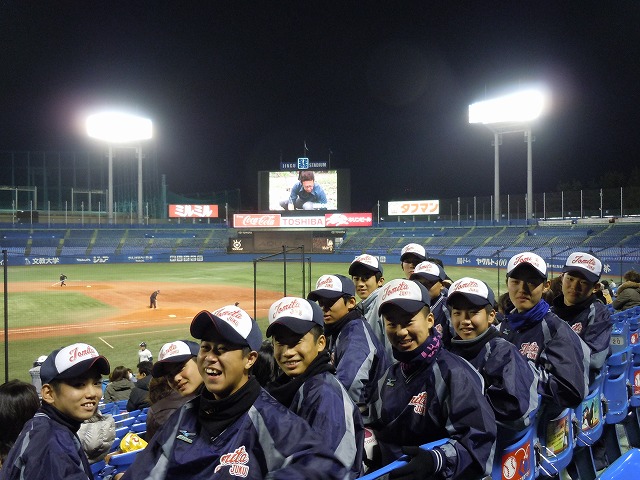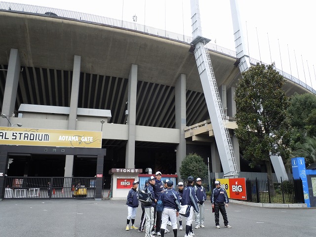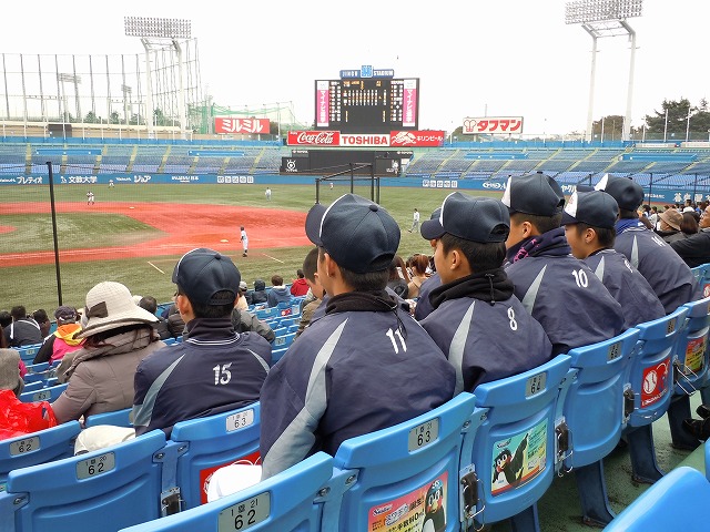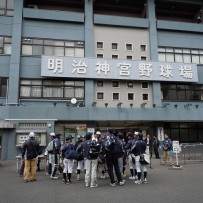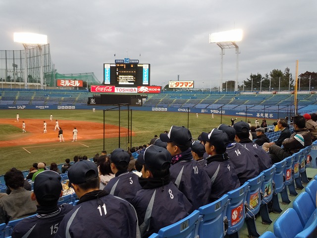 11月9日(土)「東都大学リーグ入替戦」を観戦に神宮球場に行ってきました。この日の神宮球場は、東京都の高校野球2試合もあり計3試合を観戦することがでいました。神宮球場という聖地に感激しました。そして高校生のプレーはいままで憧れであったものが、追いつき追い越すという現実的なレベルとして捉えていたようでした。さらに「駒沢大学」VS「東洋大学」の試合では(高校生の試合の後でした)、速さ強さ、その何もかもの次元が高くとても参考になりましたね。帰りのバスでは「野球を観る視点」を塾長から教わりました。(得点にからんだエンドランの場面を想定して・・・などなど)今後、野球を観るときの視点が変わった者もいたかもしれませんね。