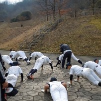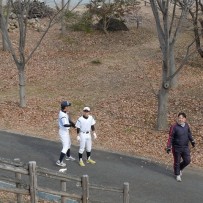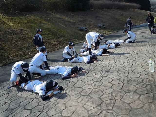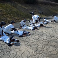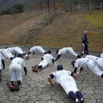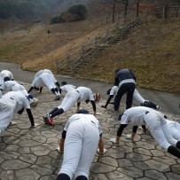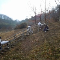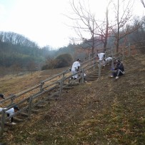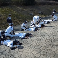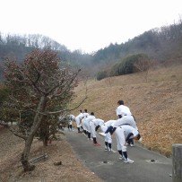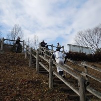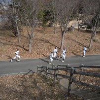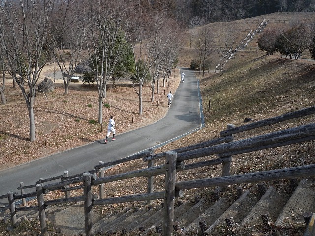 この日も「またまたRAN&RAN&RAN」です。急な斜面にある階段を駆け上がります。あまりの過酷さに○吐する者が続出。それでもすぐに復帰して、なにごともなかったかのような顔をして走り出す塾生達。本当にたくましく心身共に成長しています。