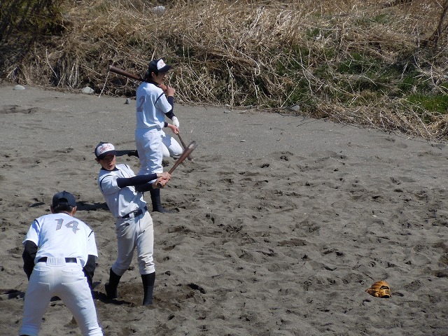 ロングティー。砂浜での打ち込みは思うように動けず、でも力強く振ることを貫きましたね。