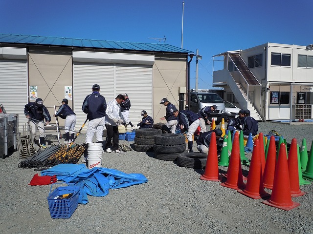 練習後はみんなで道具の手入れ。次年度の塾生(後輩たち)のために・・・そして感謝を込めて・・・