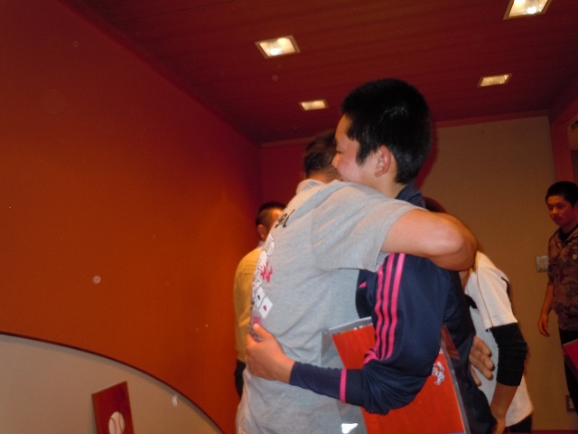 一人ひとりと別れの抱擁。