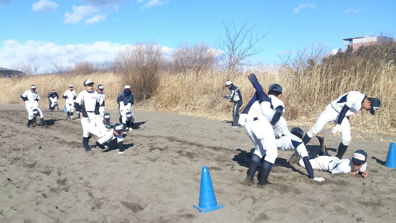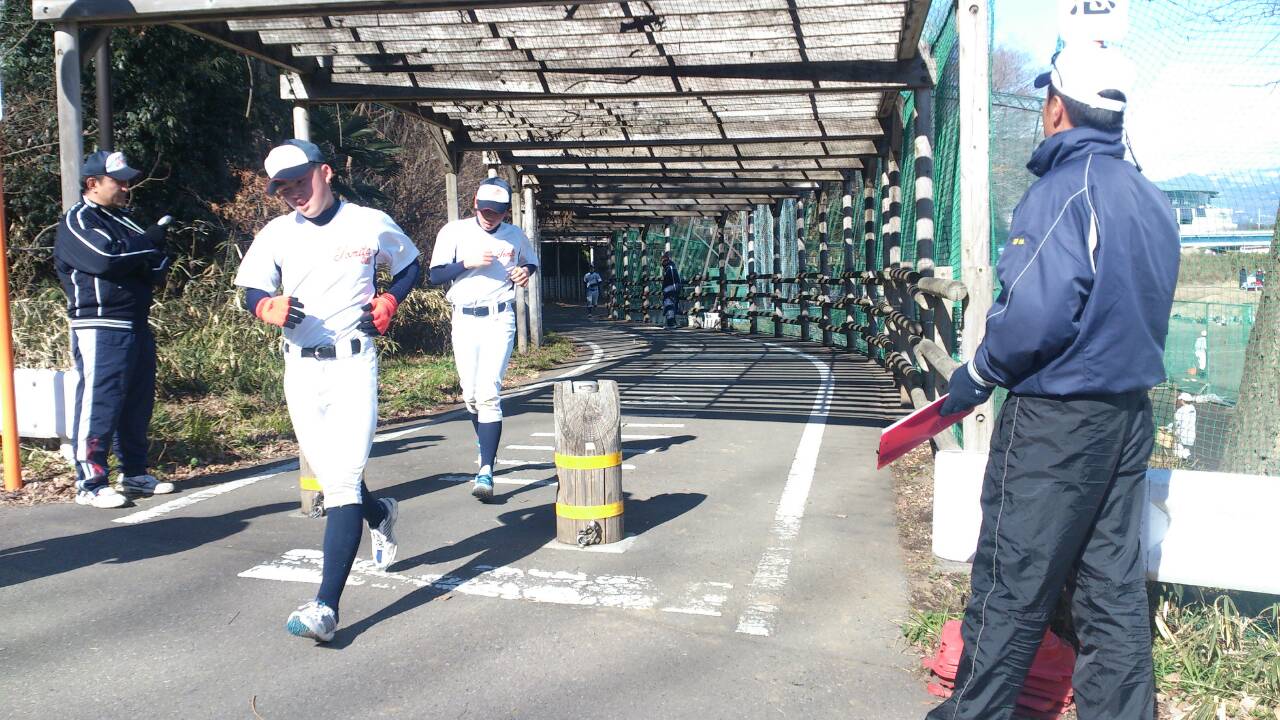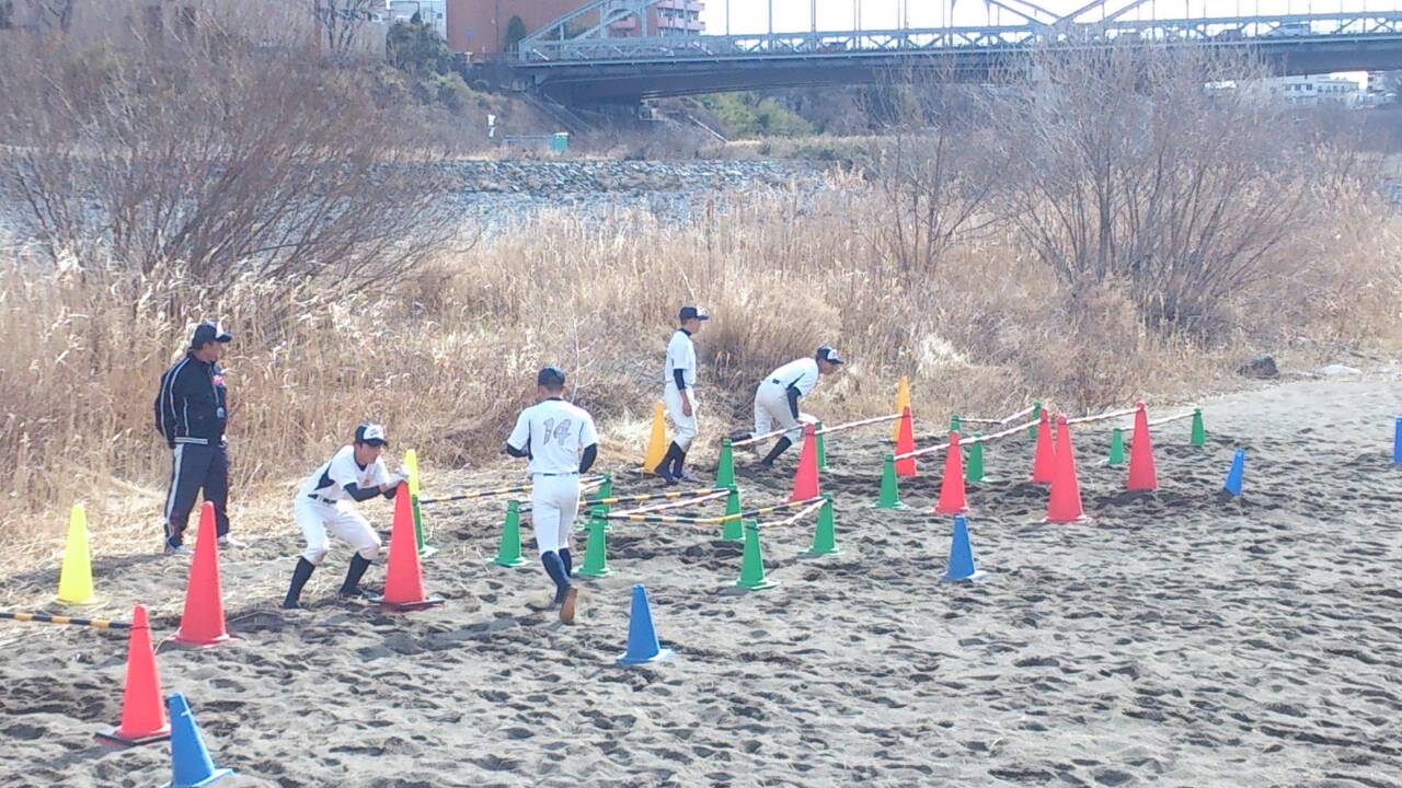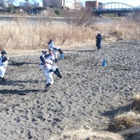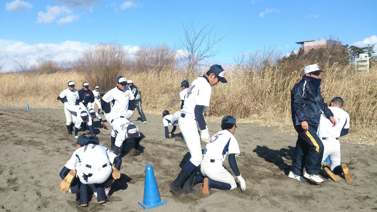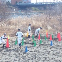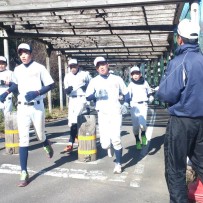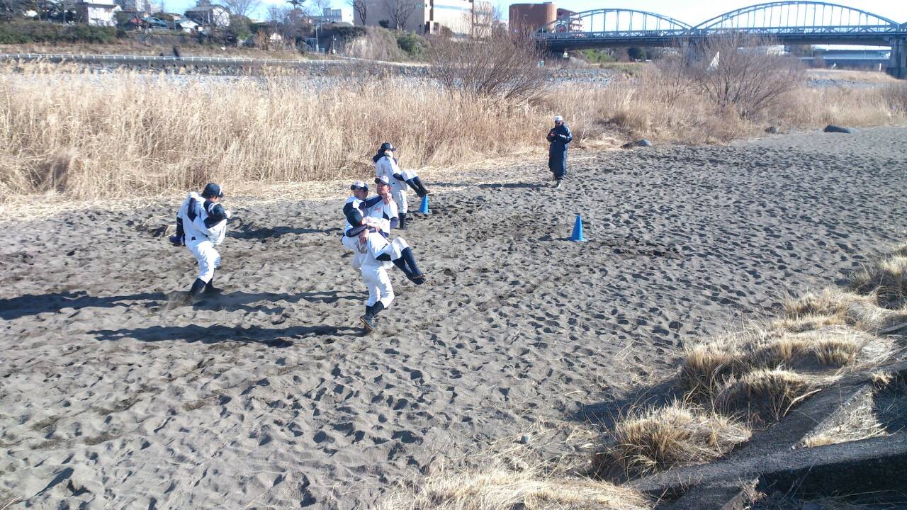 この日は、赤城おろしが吹き荒れる極寒の中での練習でした。自転車を使い、二人一組で「乗る」「押す」の役割を交替して坂道を登るという練習をしました。爽快な表情で坂道を下りて来る塾生が何とも微笑ましかったです。自転車を貸して頂きました前商硬式野球部の先輩方、どうも有り難うございました。