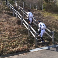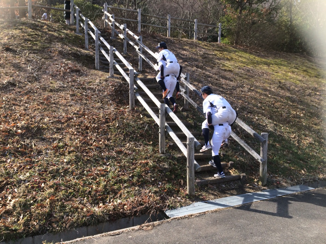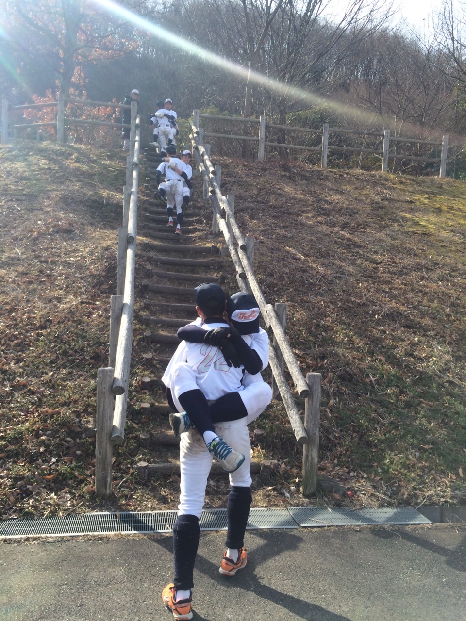 仲間を背負って登り、抱っこして登り、手押し車で階段を登りました。倒れこんだ塾生の汗で地面にはくっきりと背番号が写し出されていました。