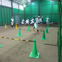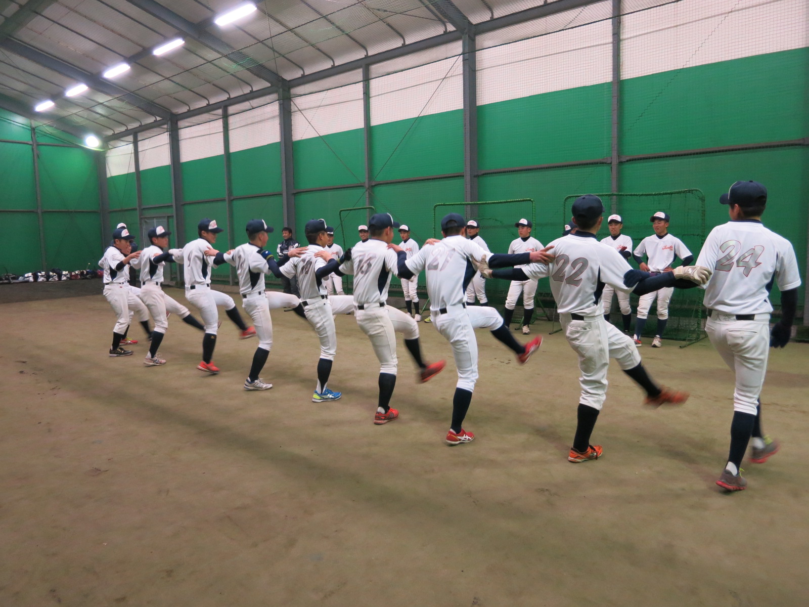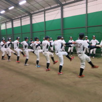 公立高校の前期試験も終わり少し安堵する中、室内練習場では塾生達の声が響きわたっていました。この日の新しい練習では、みな一列になり「ラインダンス」が行われました。見ている以上にキツイ練習だということは塾生達の表情からも感じとれました。「グラウンドでだけ頑張る」ではなく、いつでも一生懸命にやる。「キツイことや苦手なことなどやりたくないと思うことをどれだけ一生懸命やれるかで力が高まる。」ことを教えて頂いてきました。「バカになれ」「継続」ですね!!