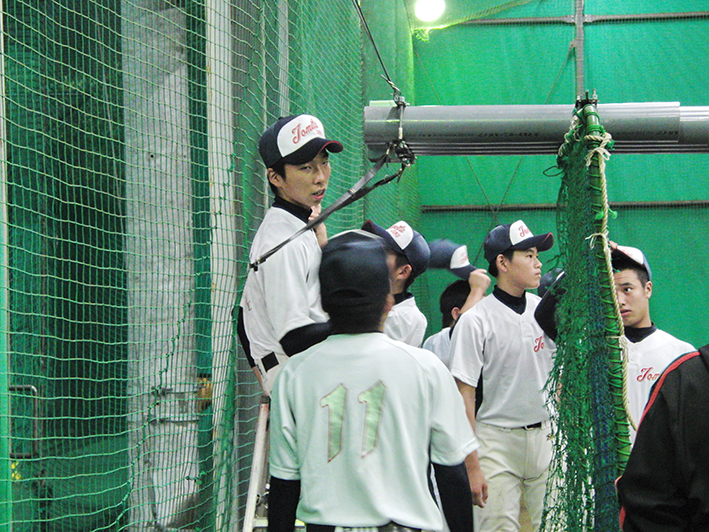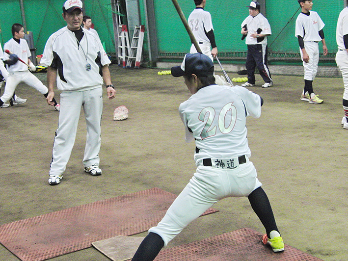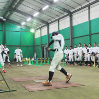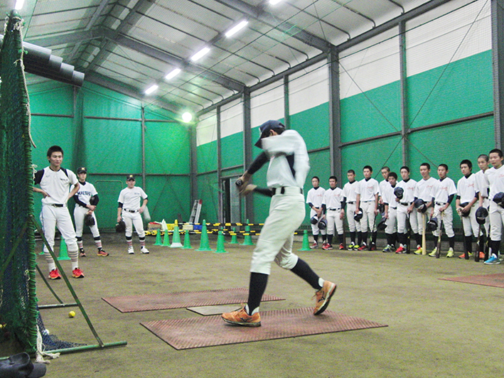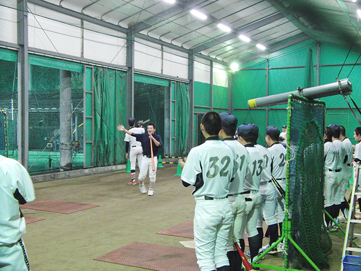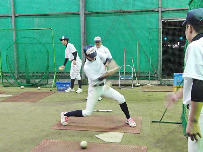 この日は台風が迫っている真っ只中の練習!雨風がしのげる、素晴らしい環境での練習に感謝。初日ともあって今日は、道具の準備から練習の仕方等教わりながらの練習だ。いろいろな型の攻撃練習ここでもまた今までに体験した事のないバッティング。戸惑い慣れないながらも取り組んでいるようだ…