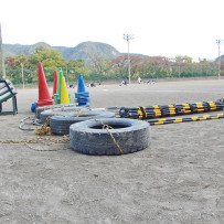 朝は風があり寒い中準備をし7時練習開始!