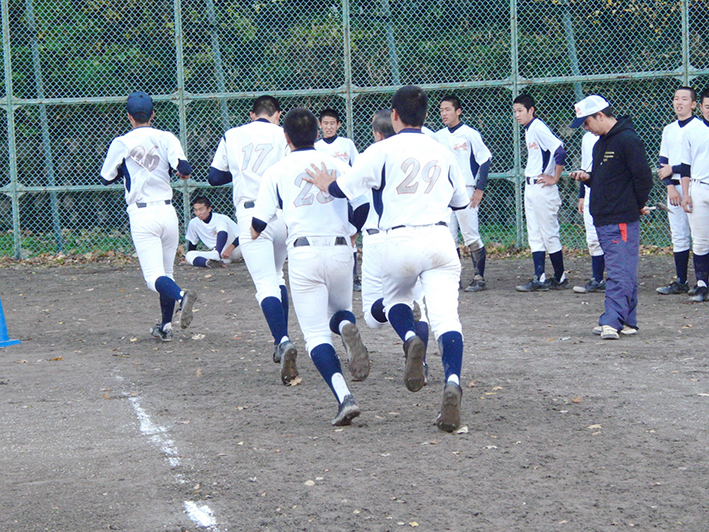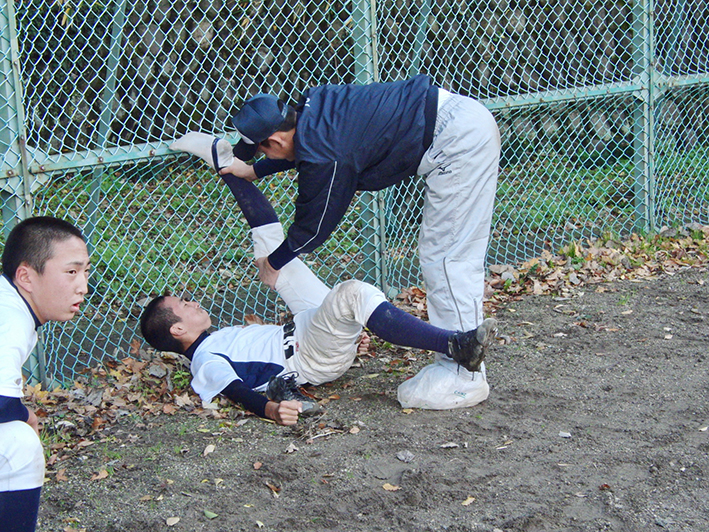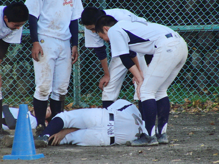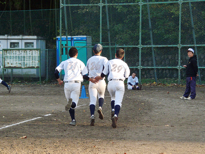 足元が悪い中の内野と外野に分かれてノック。足を滑らせて転ぶもの、エラーをするものも続出してました。足元の悪い中の硬球の動きの違い。いい経験になったと思います。