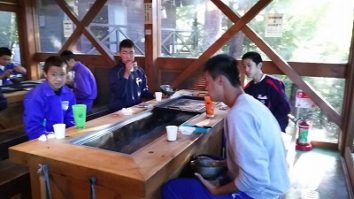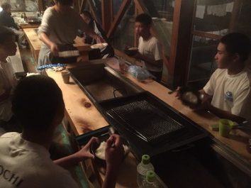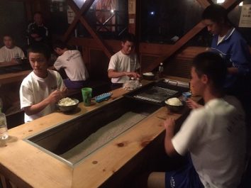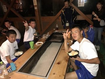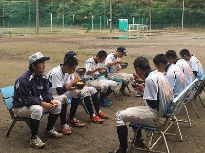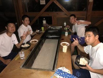 ついにこの日を迎えた。富田塾恒例の食事合宿第1回目。お昼はカレーライス。一人当たり4合のご飯を食べる。塾生達にとにかく残さず食べてもらえるようにと、人参玉ねぎ肉は食べやすい様に細かく、カレーはさらっと仕上げたりと工夫はしてみたが…。食べ始めは笑顔も見られたが、後半になるにつれ、下を向く塾生やスプーンが止まってしまう塾生もいて、笑顔は消えた…。食べ切るのに時間がかかった。そんな中、今日は、富田塾卒塾生の高橋君が練習のお手伝いに来てくれた。さすがである!大盛りカレーライスを物ともせず余裕の完食!何のためにこんなに食べるのか…。強くて大きな身体と誰にも負けない体力を手に入れるため!目標に向かって日々努力‼︎子供も親も目標は同じはず。私達親も目標を意識して踏ん張らなければいけないと改めて感じた。
