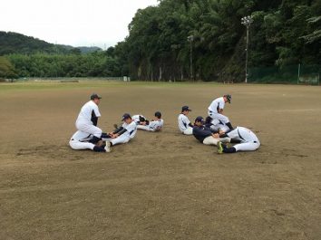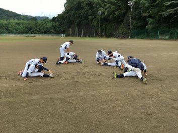 9/23 練習第五日目。恒例の入念なストレッチが始まった。広々とした赤城第二グラウンドにうめき声が響き渡る。この声が聞こえなくなるのはいつになるだろう…。頑張れ!!
