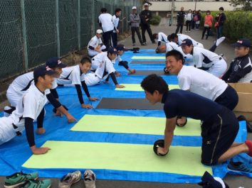 トレーニングでは、引退した県央高校野球部の3年生に協力してもらいながら頑張った。特にパワー走は先輩がいたからこそ、時間内に走りきることができた。また、先輩より早くゴールできれば終わりという塾長の配慮に、全員が声援を送り、見事に走り抜けた。