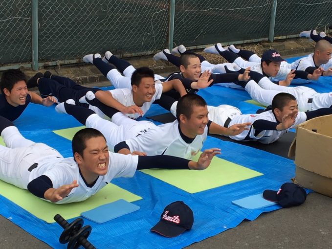トレーニングでは、引退した県央高校野球部の3年生に協力してもらいながら頑張った。特にパワー走は先輩がいたからこそ、時間内に走りきることができた。また、先輩より早くゴールできれば終わりという塾長の配慮に、全員が声援を送り、見事に走り抜けた。