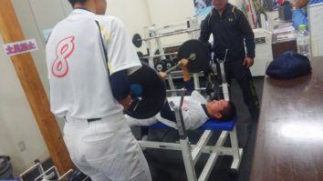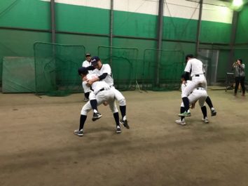 練習の後半、ペアを組んで力比べ・体幹強化の新練習。苦戦しながらも力を合わせ声を掛け合いながら全ペアーができるまで取り組む姿が見られた。