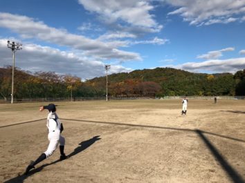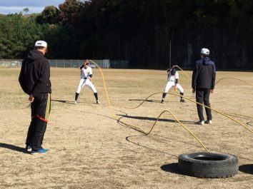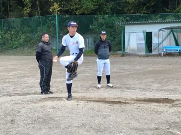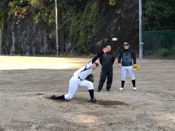 本日は、元プロ野球選手の橋本武広さんを臨時コーチとして迎えての練習。橋本さんが元ピッチャーのため、一人ひとりピッチングを行った。的確で分かりやすいアドバイスをもらい、目に見えて球速が上がり、球質が変わる塾生もいた。