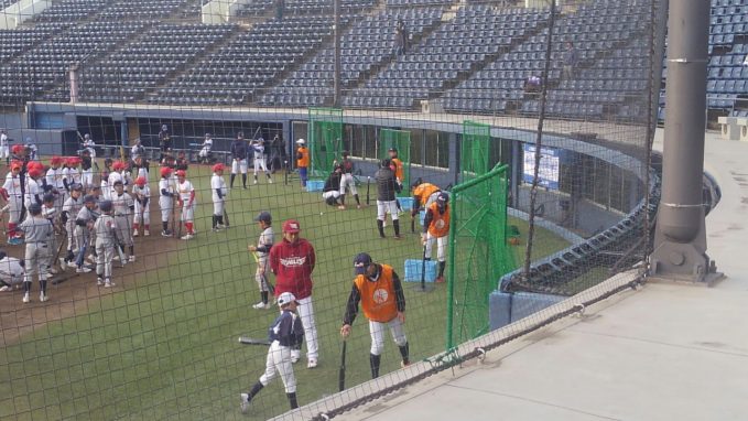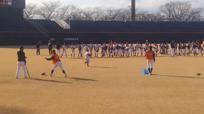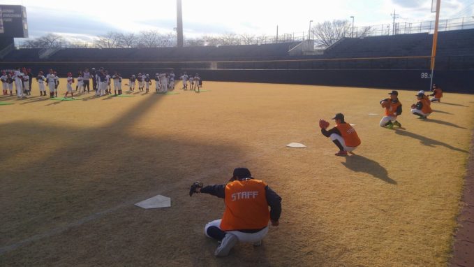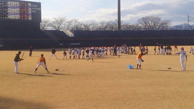 プレイボールぐんまから、敷島球場で行われる野球教室「ゴーゴーチャレンジ2018」での、お手伝いの依頼が塾生にあり、参加した。群馬県出身のプロ野球選手を指導者として迎えての野球教室で今回5回目。少年野球時代にチームで参加し指導を受けた塾生もいる。