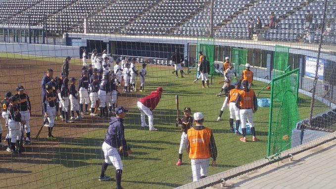 元気で無邪気な小学生と触れ合うことで、野球への新鮮な気持ちを思い出した塾生もいたのではないか。プロ野球選手のデモンストレーション(守備・バッティング・ピッチング)を間近で見ることもでき、よい経験と大きな収穫が得られたことだろう。