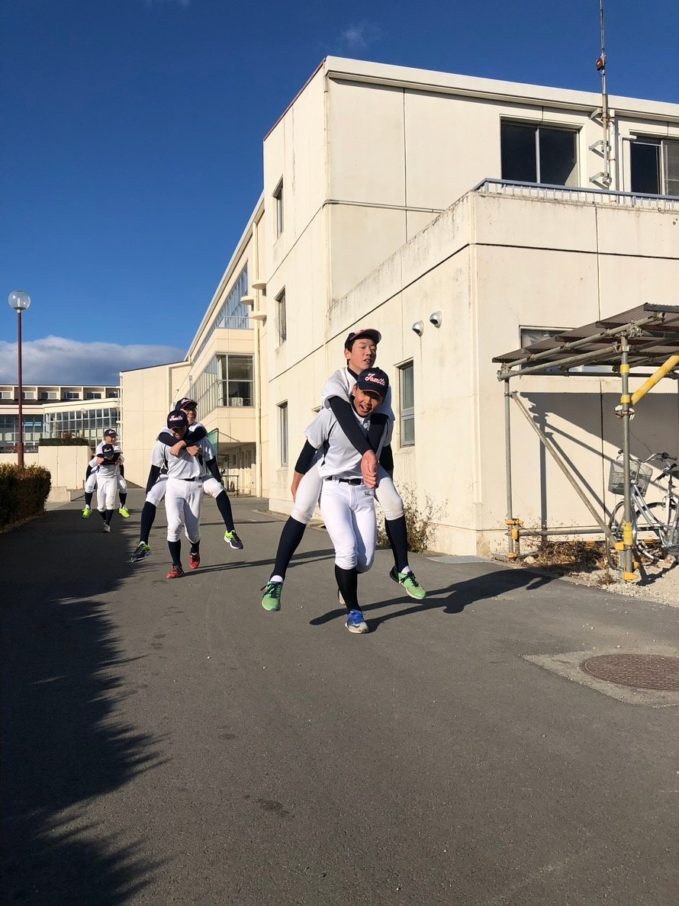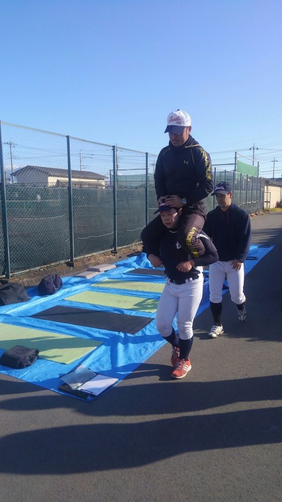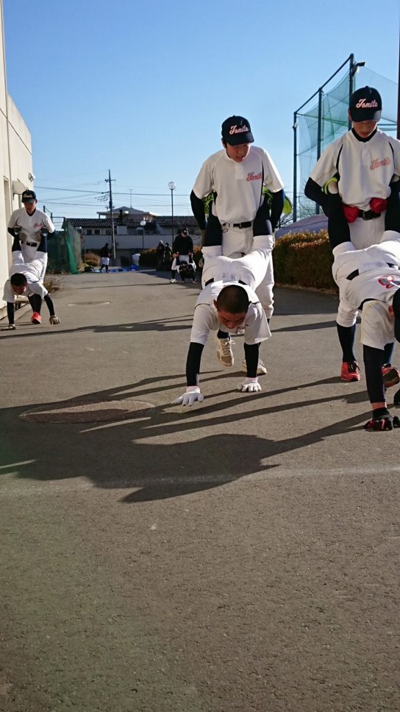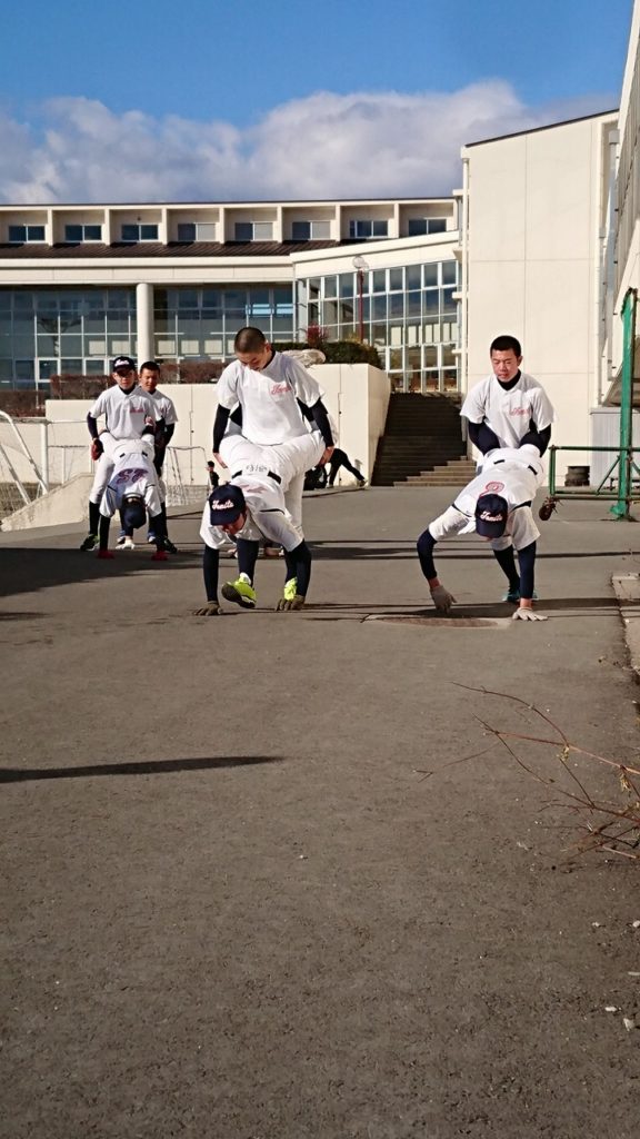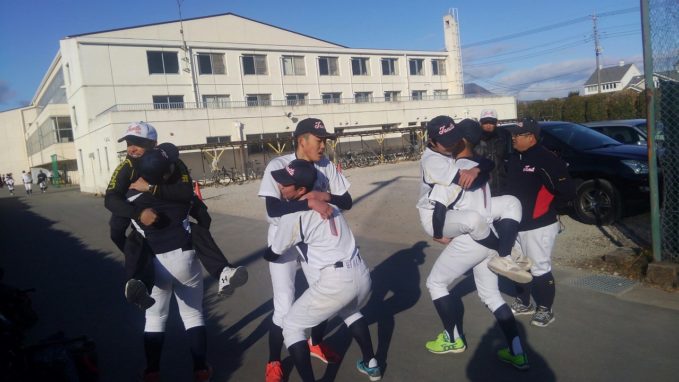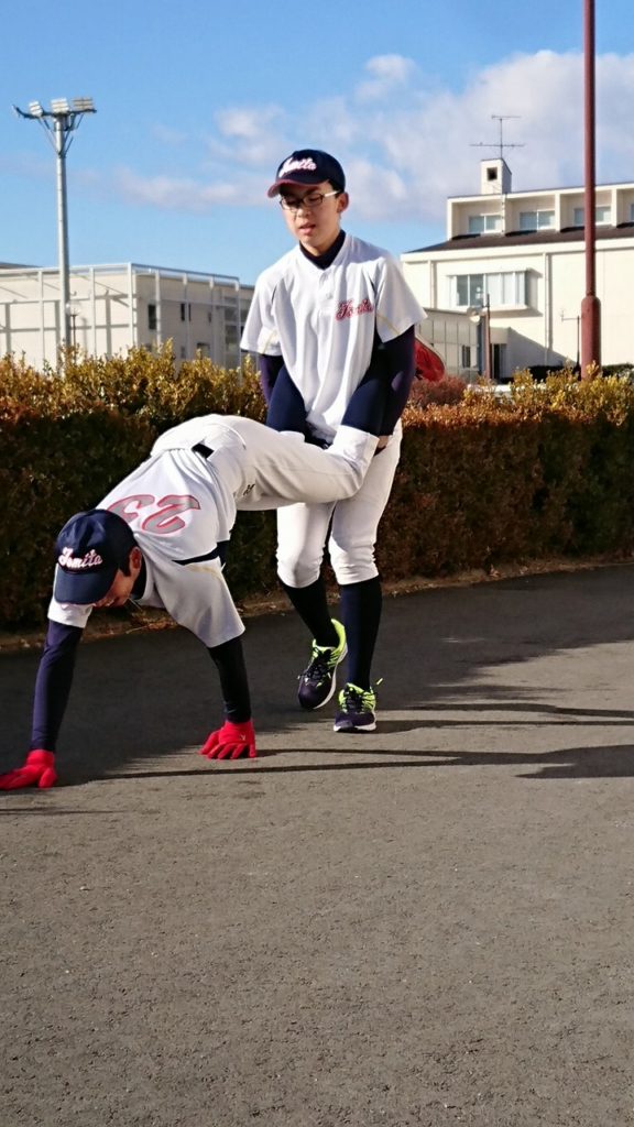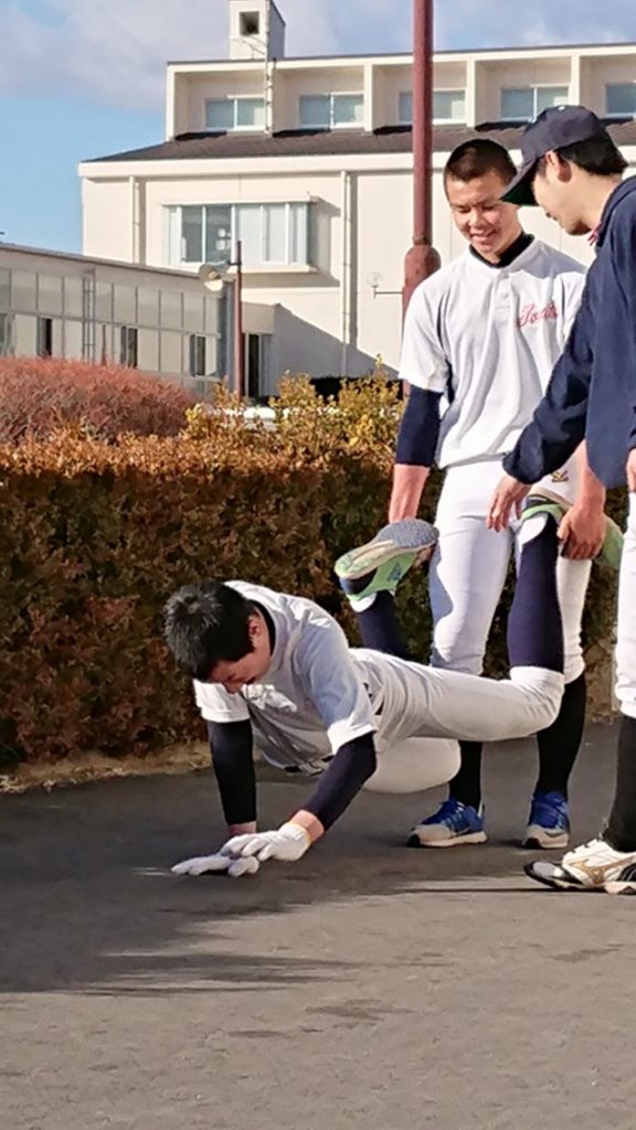 新しい年を迎え、初練習は明和県央高校で行った。自主トレ後、塾長から新しい腹筋トレーニング方法を教わりレベルアップを図る。
