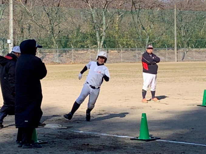 新たに走塁練習も加わり、走塁による点の取り方の大事さを教わる。