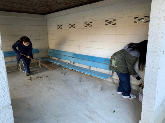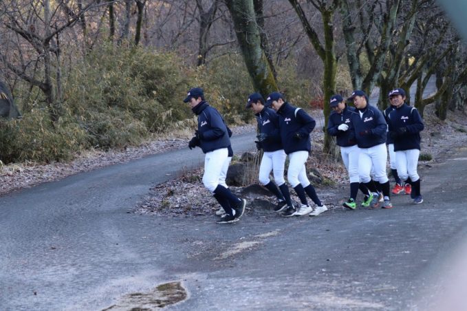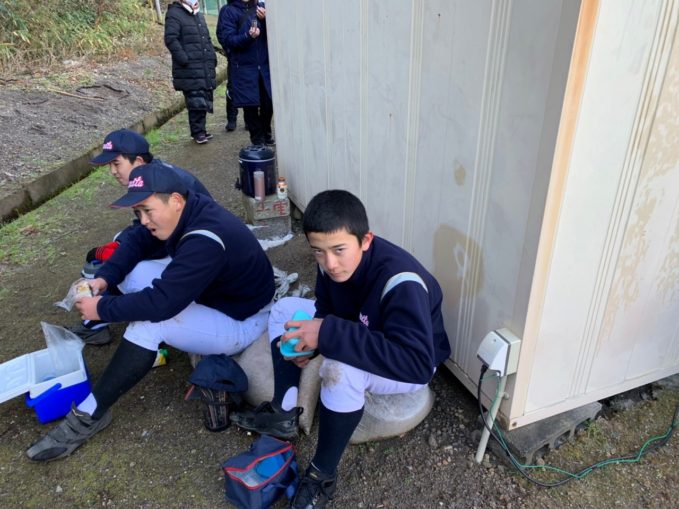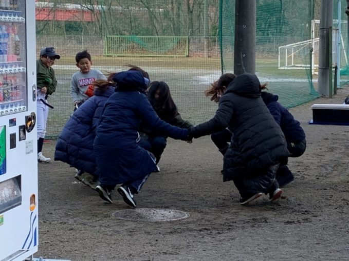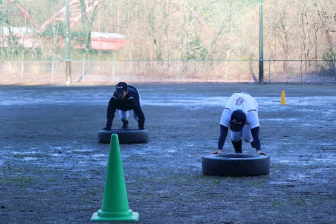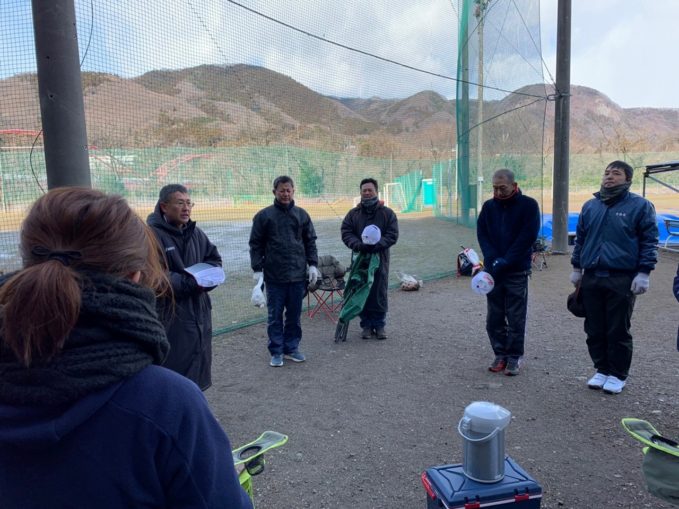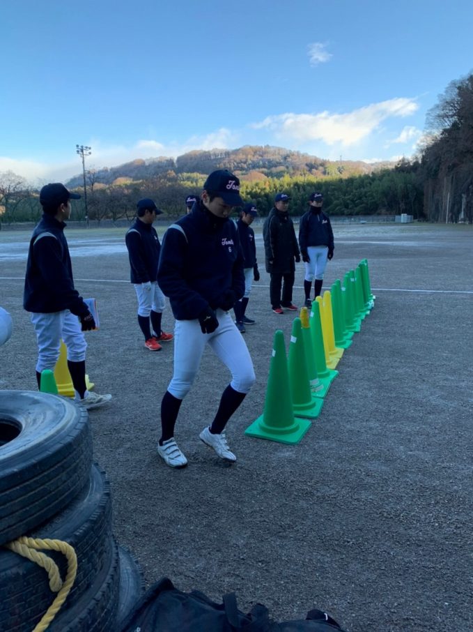 グラウンド周辺の山々が雪化粧をする中、2019年最後の練習が始まった。凍りついたグラウンドを有効活用しながらサーキットSTART!!