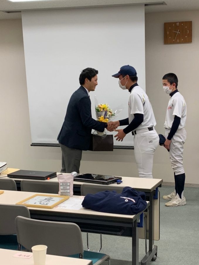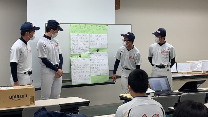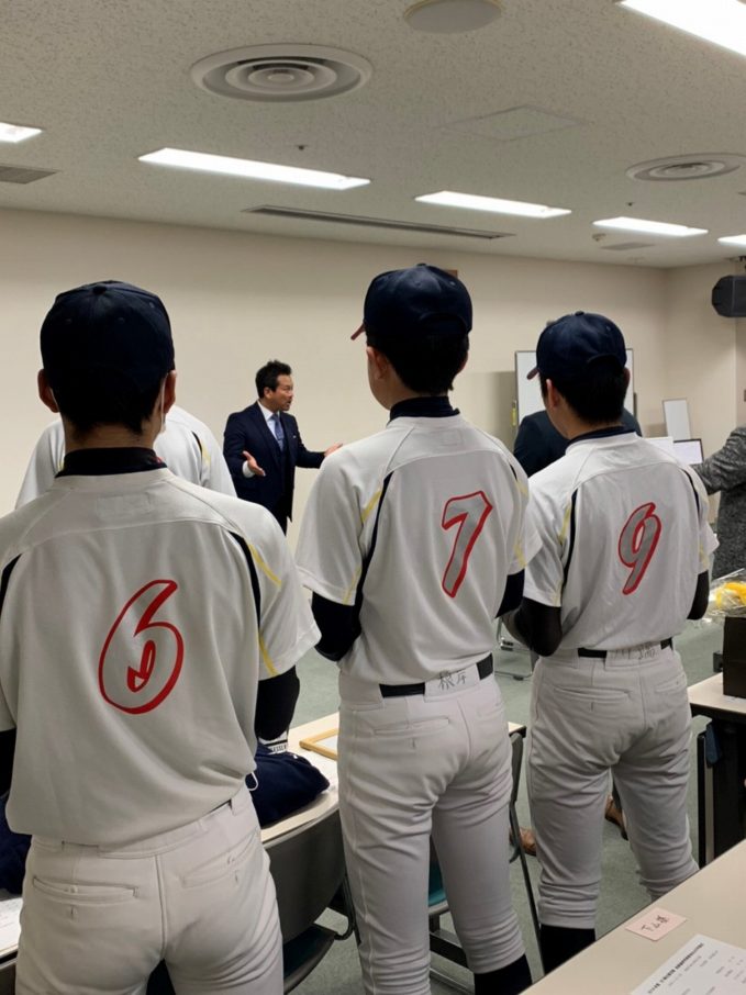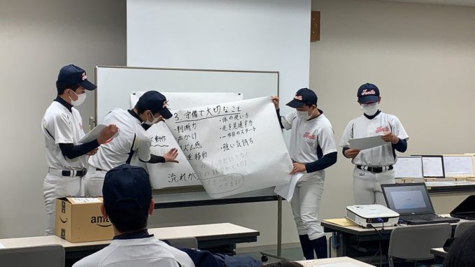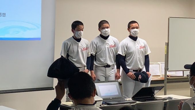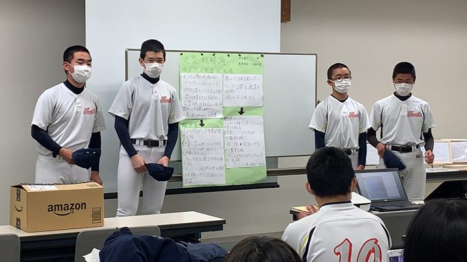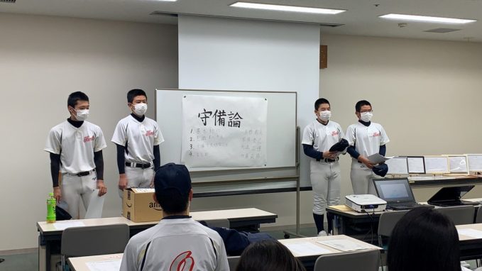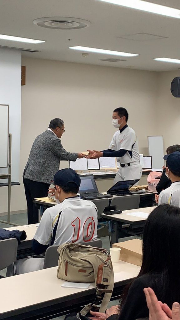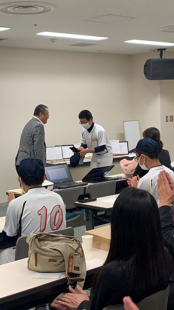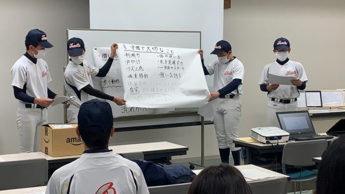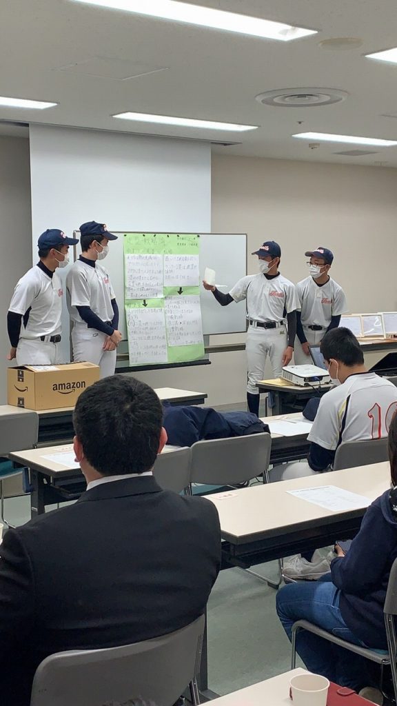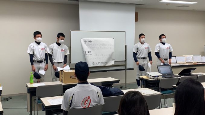 どのグループも、しっかりまとめ堂々と発表し、成長した姿が見られました。ここで学んだ技術論を、次のステージ、高校野球で活かしてもらいたいと思います。