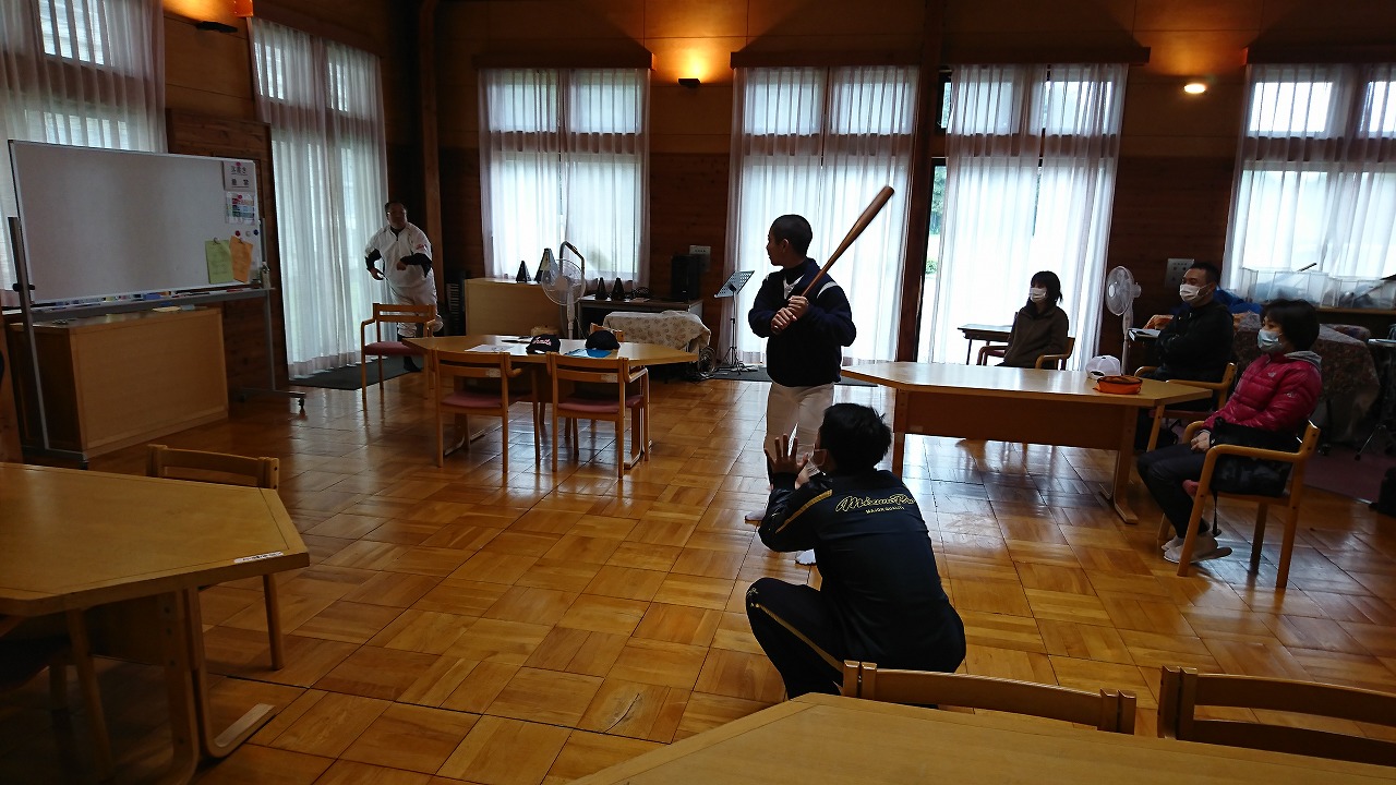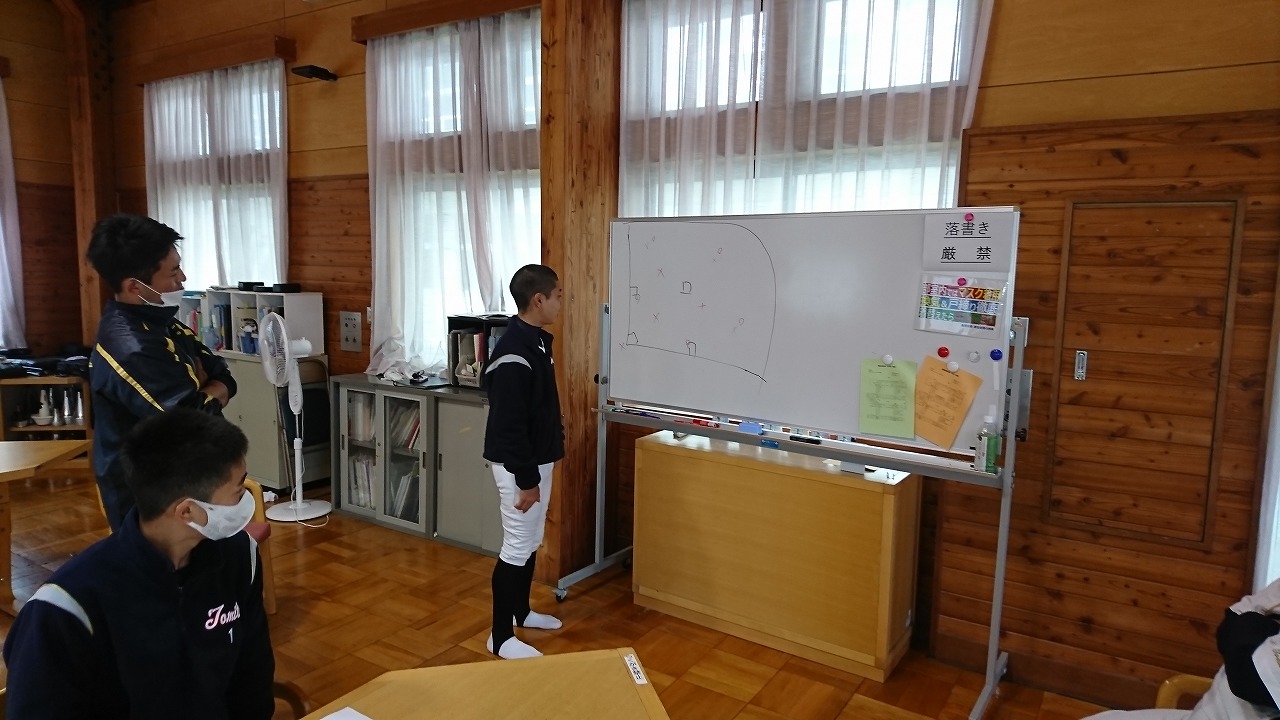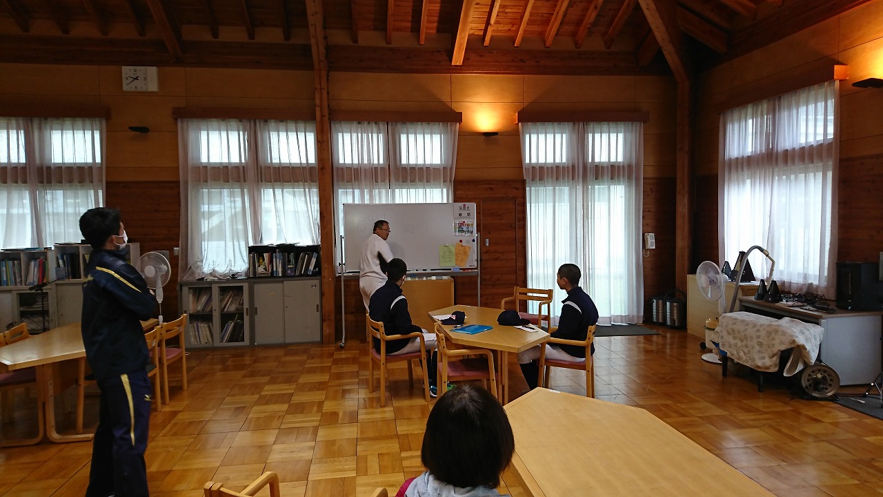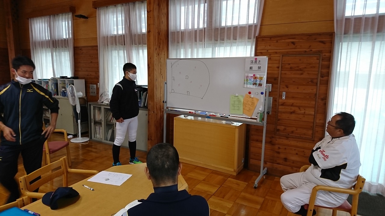 朝からの雨で急遽渋川青翠高校の一室をお借りして、野球の勉強会を開催。
