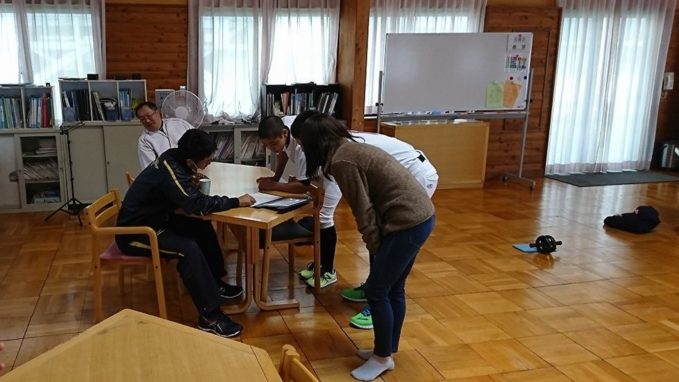 途中、腹筋しながら歴史の年号テストを解く塾生達。受験生だけあり難なく答えると思っていたが、あれっ。まさかのノーアウト満塁の大ピンチ!プレー同様タイムを使って確認をする塾生達。