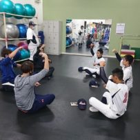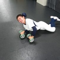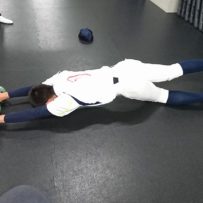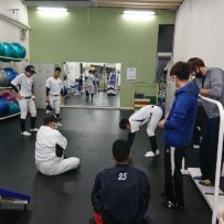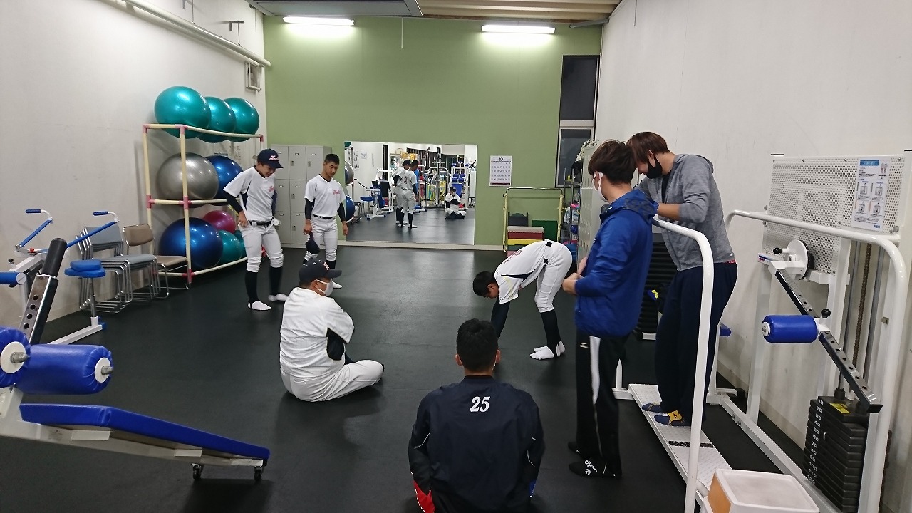 先輩たちからの優しい叱咤激励を受けながら懸命に頑張る現役生。アドバイスをもらいながらメニューを消化。