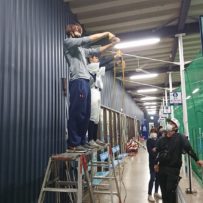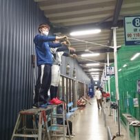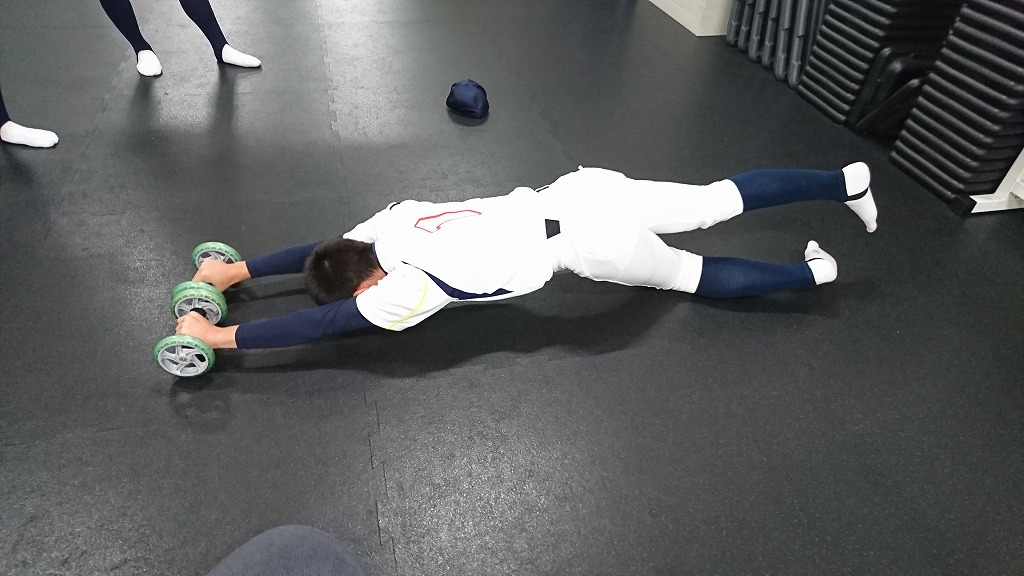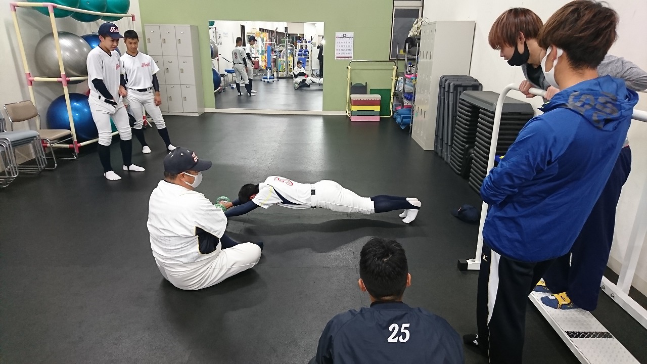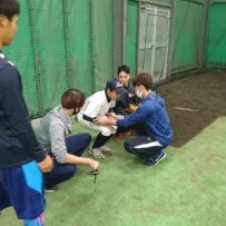 生憎の雨のため、 現役vsOBのウエートでスタート。一緒にメニューをこなしてくれました。ビジョントレーニングを加え、徐々に練習メニューも内容が濃くなってきました。