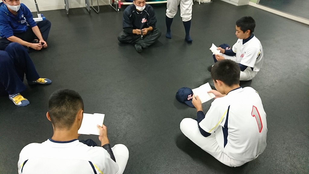 最後は先輩たちが一人ひとり塾生時代、高校野球時代を話してくれて、塾生は真剣に聞いていました。