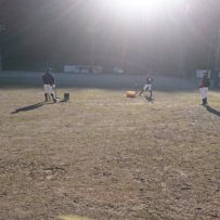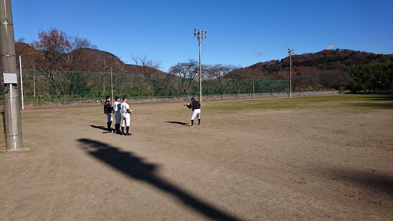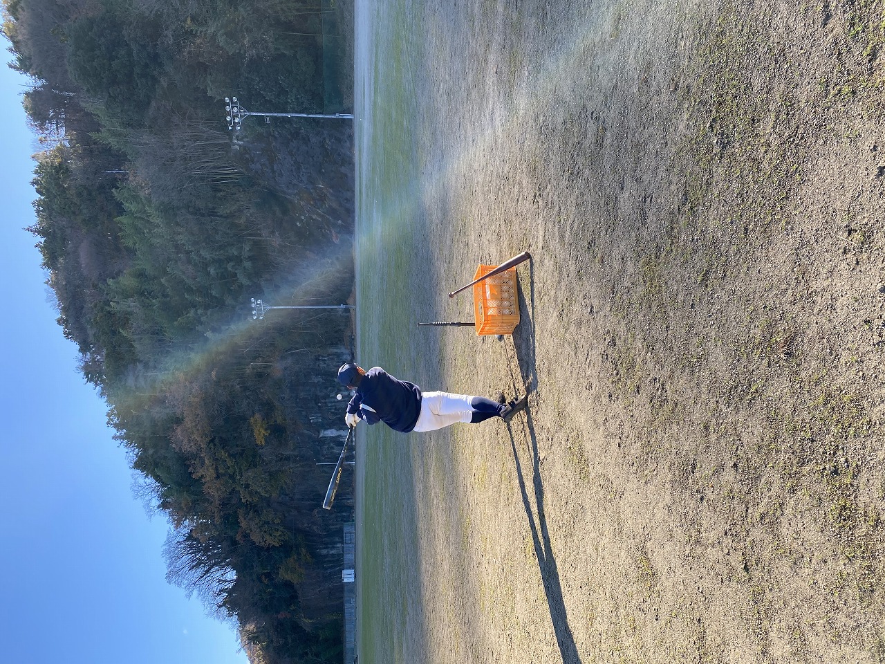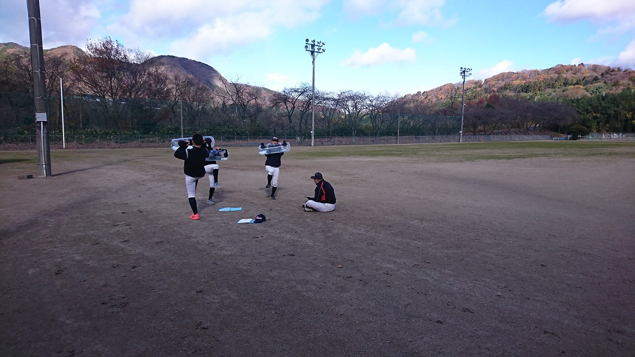 練習が終わり3人揃って荷物を運ぶ後姿。8月末の入塾から必死に練習をし、野球を通じて知り合った仲間が、切磋琢磨しながら練習では厳しく、終われば仲の良い15歳の野球少年たち。仲良く話しながら頼もしさを感じられるようになりました。
