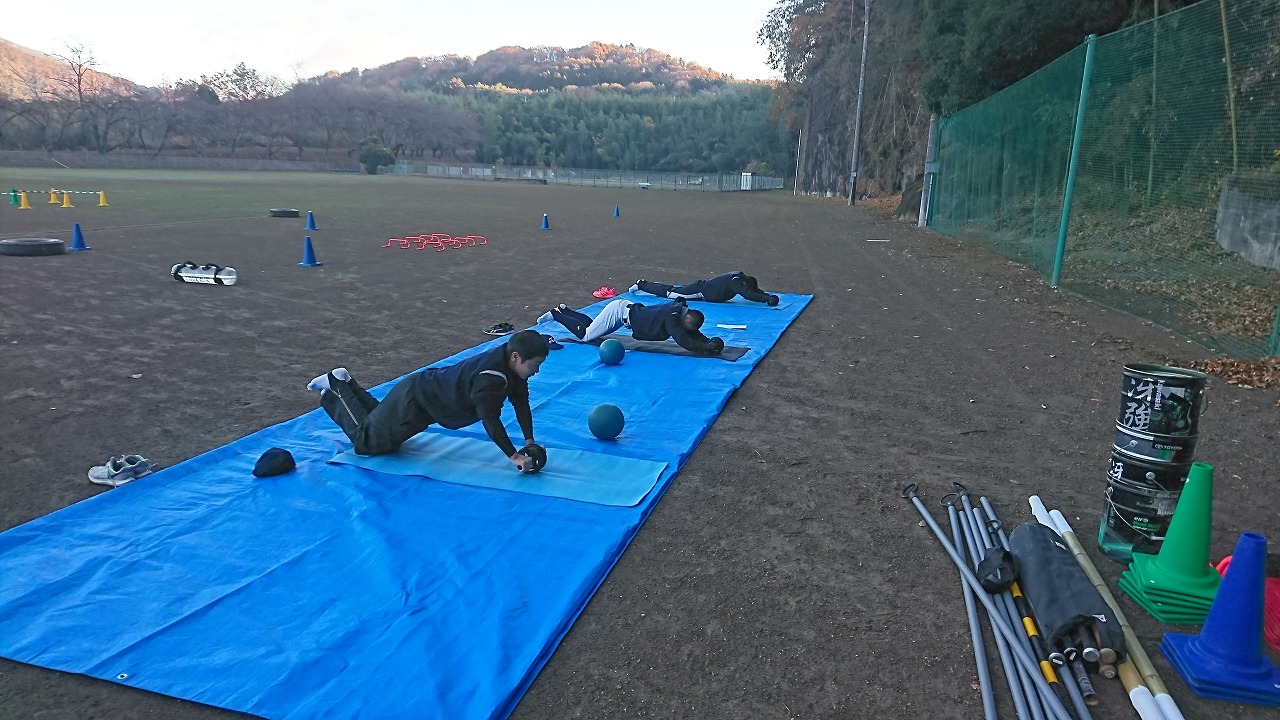 サーキットトレーニングを順調にこなす塾生たち。終了後の片付けでは日常の生活から効率的に動き、段取りの大切さを塾長から教わりました。高校生活だけでなく社会人になっても活かせる内容で塾生たちは是非とも覚えておいてほしい内容でした。
