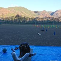 食後は風も強くランメニュー中心に。富田塾恒例の鬼ごっこで必死に逃げ、追いかける楽しいメニュー。