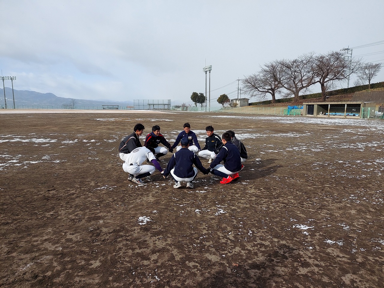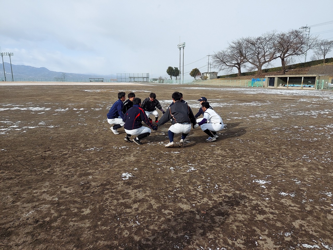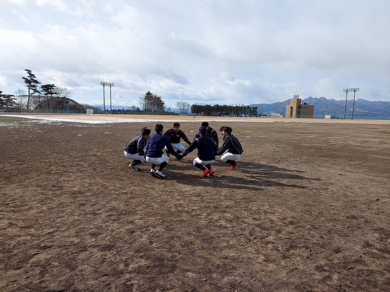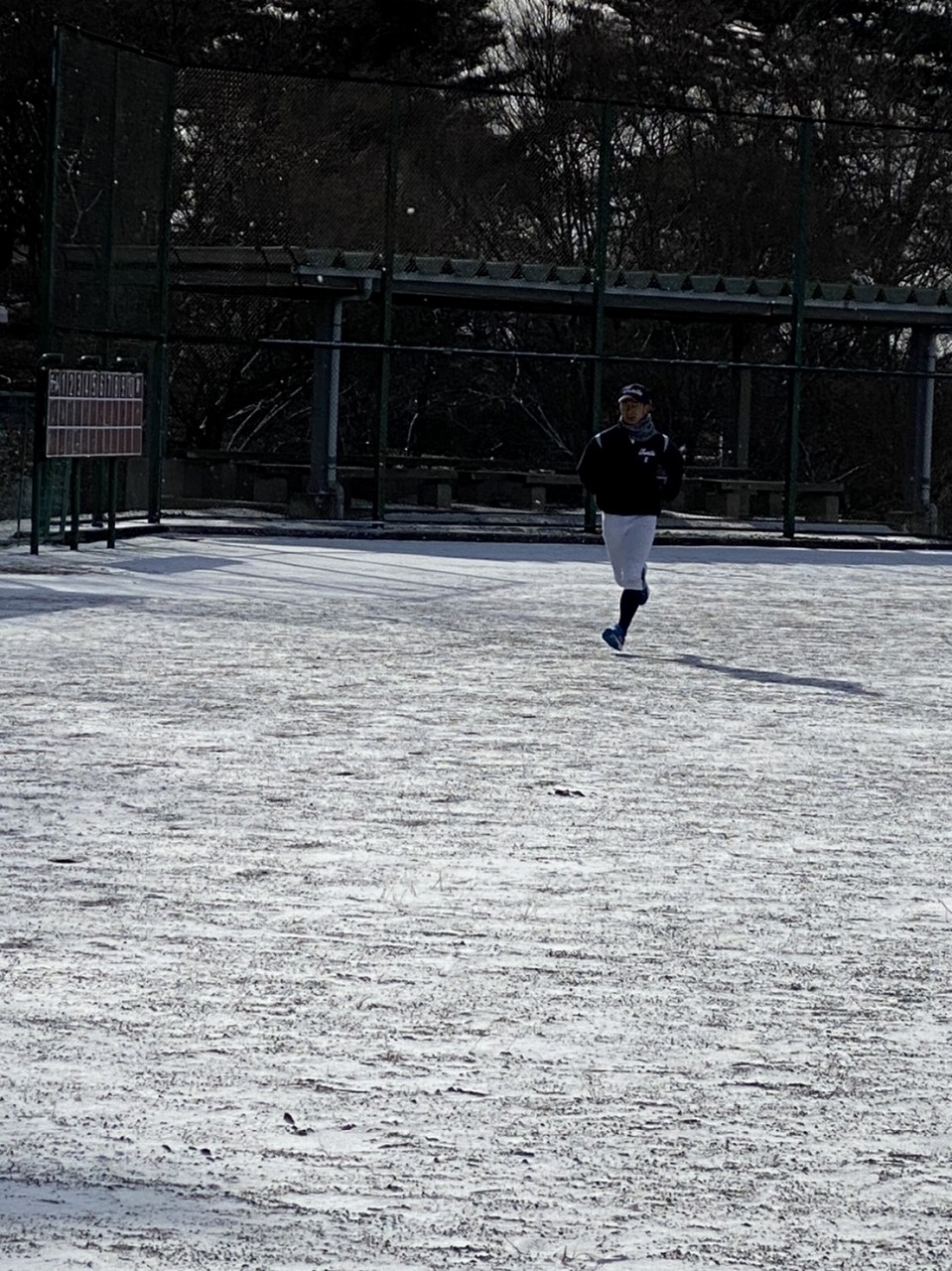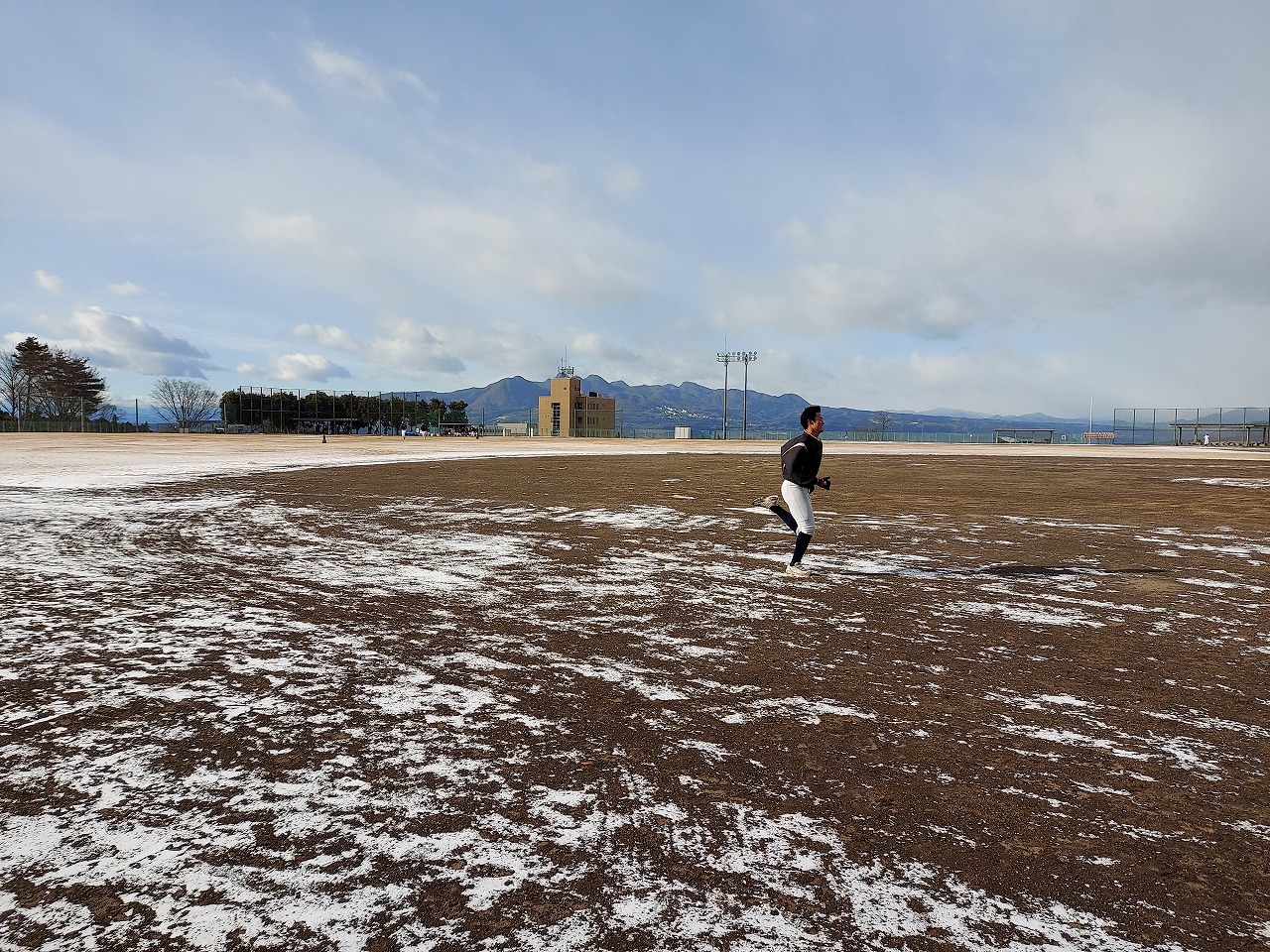 本日は場所を赤城総合グランドに移して恒例の駅伝。まさかの雪模様でグランド内をマラソンに変更。13期生、16期生、18期生がお手伝いしてくれました。高校3年生の18期生は夏から少し野球から遠ざかっていたかもしれませんが、さすがは高校生という動き。13期生・16期生も負けじと頑張っていました。