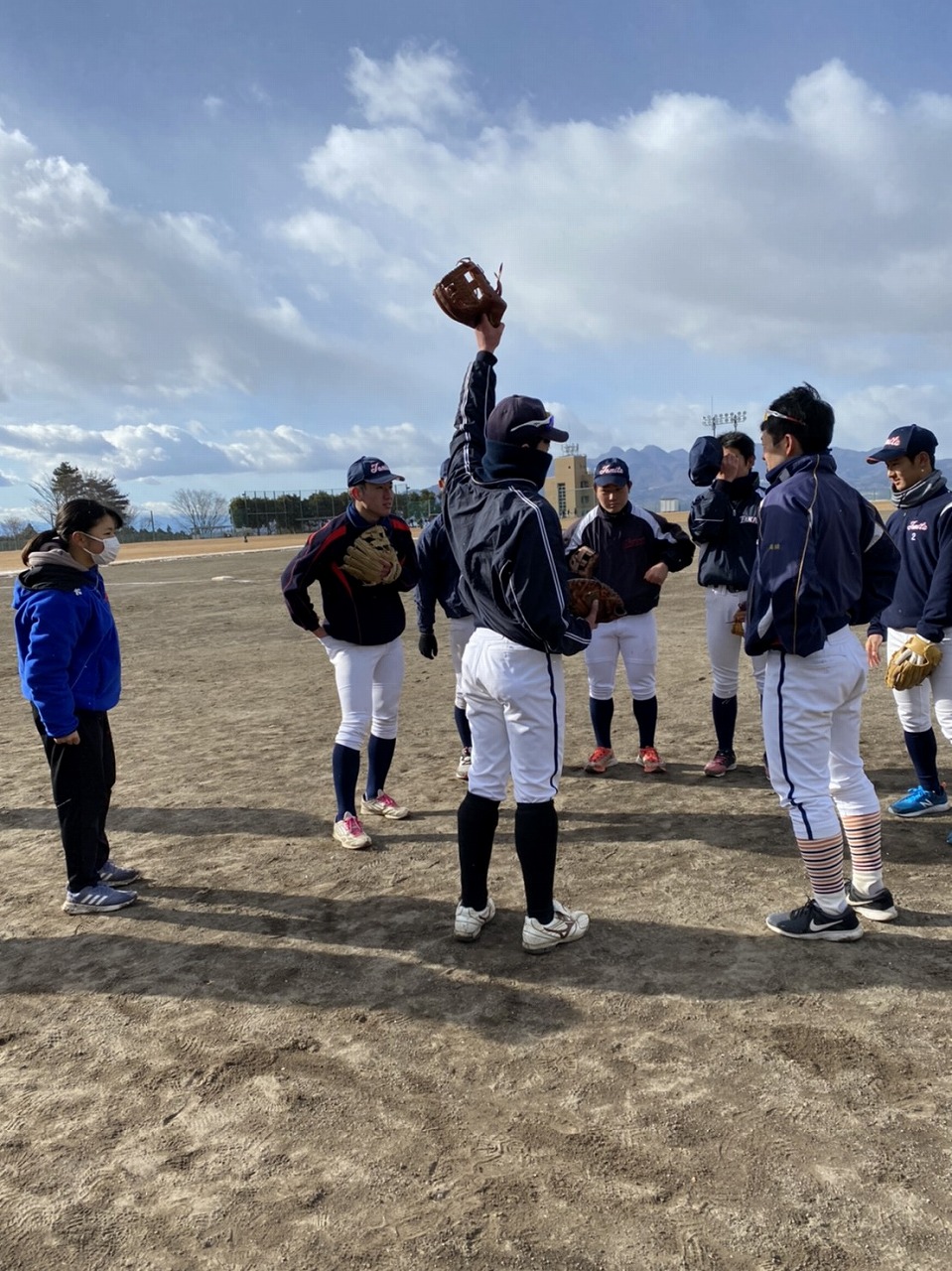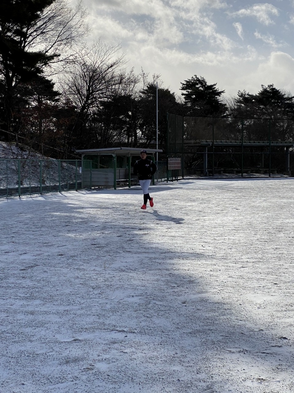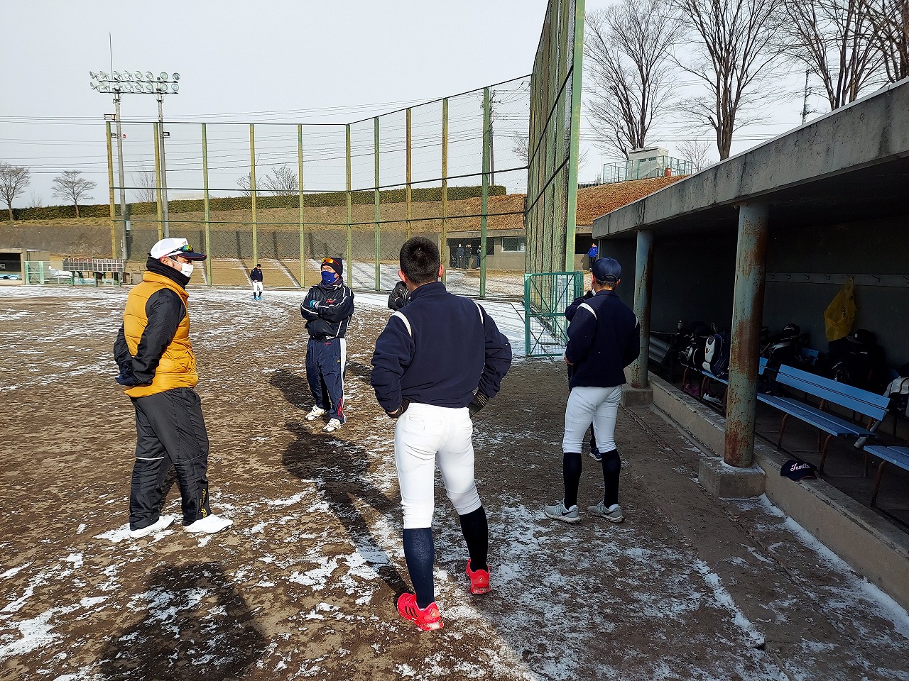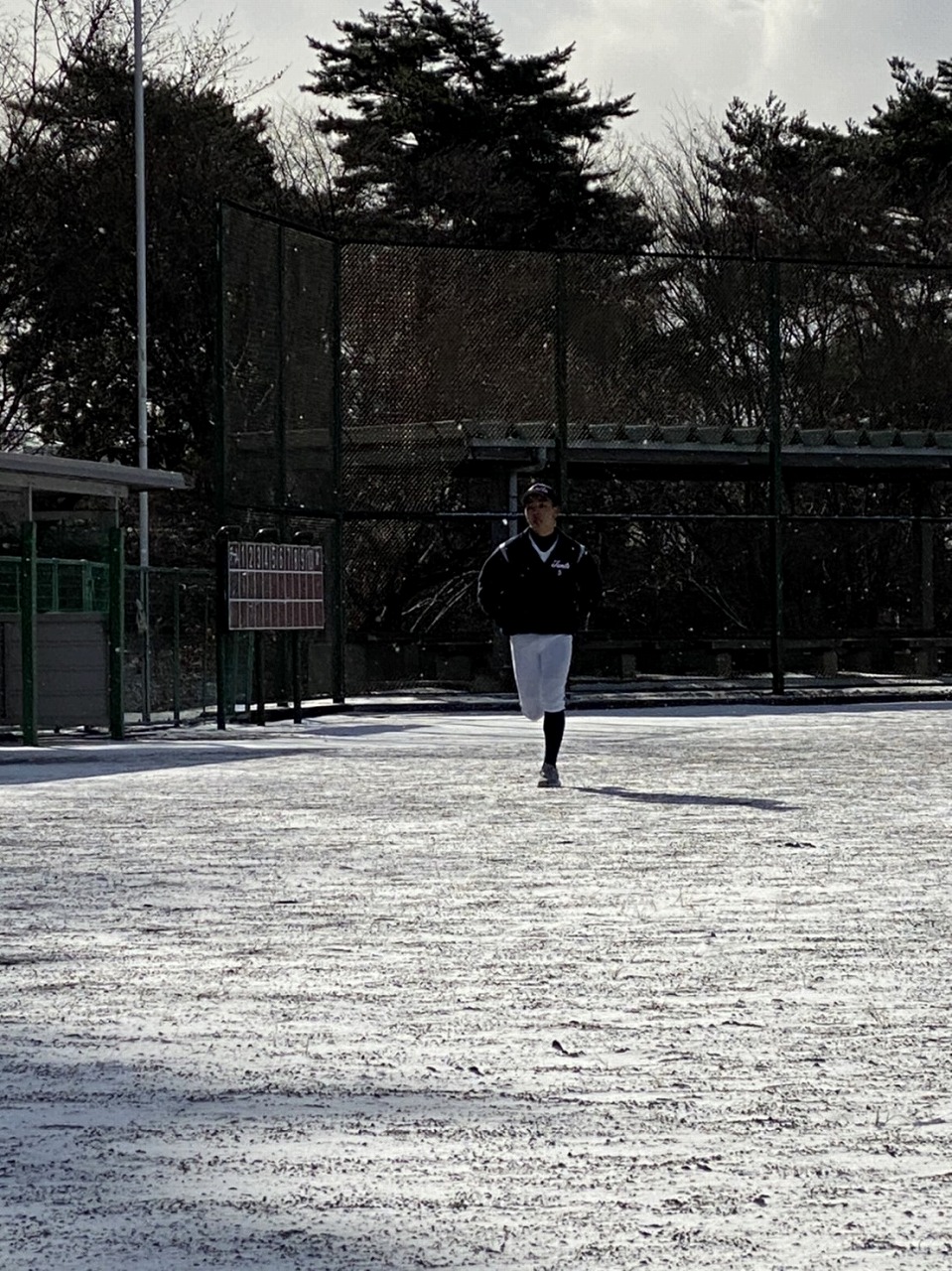 本日は場所を赤城総合グランドに移して恒例の駅伝。まさかの雪模様でグランド内をマラソンに変更。13期生、16期生、18期生がお手伝いしてくれました。高校3年生の18期生は夏から少し野球から遠ざかっていたかもしれませんが、さすがは高校生という動き。13期生・16期生も負けじと頑張っていました。