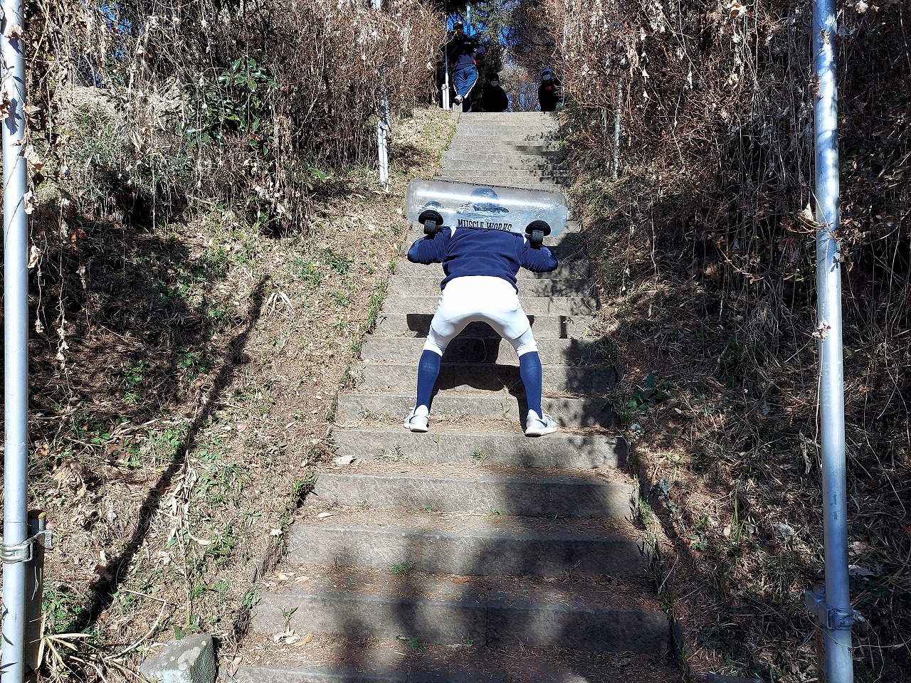 ただやはりそこは富田塾。不規則な階段に四苦八苦しながらダッシュを繰り返し、塾長からは歴代の先輩たちと同じ光景がみられたとのこと。みんな必死にやり切り、一本ずつのダッシュが終わるたびに倒れこむ姿が・・・。