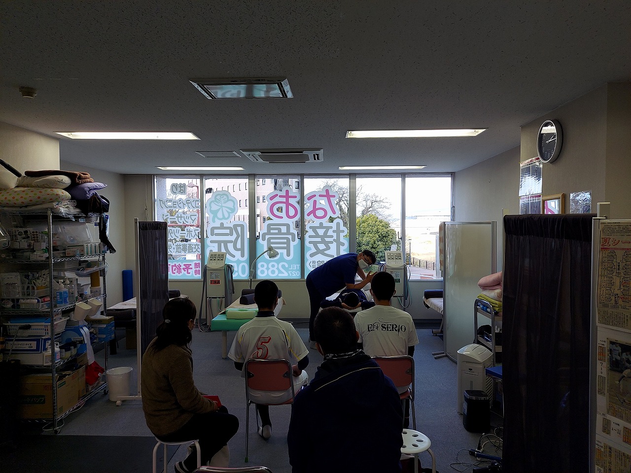 午後は「なお接骨院」様でメディカルチェックを行いました。身体の柔らかさや筋肉の使い方等々を先生に診てもらい、非常に充実した時間でした。先生とプロレス談議で盛り上がる塾生もおり、先生の診療に思わずギブアップ寸前の悶絶した表情も。ありがとうございました。