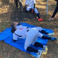 足がフラフラなのにウォータバック上り、坂道ダッシュもしっかりこなしました。長めのストレッチをしている時は先ほどまでの苦しそうな表情からどこかやり切った達成感が感じられる逞しい表情が見られました。