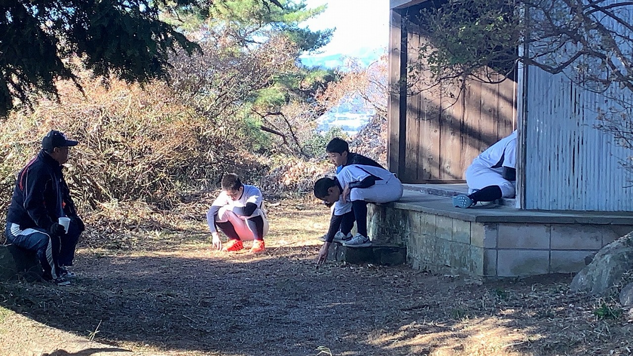 本日は予定を変更し十二山。塾長から例年は強度を上げた練習後の年明けに行っていたが、グランド状況もあり今年は早めに行うとのことでした。