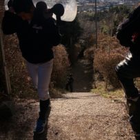 途中休憩を挟みながらいよいよ麓からスタート。上って、下って、もう一度上ってゴール。みんなギブアップせずに完遂!