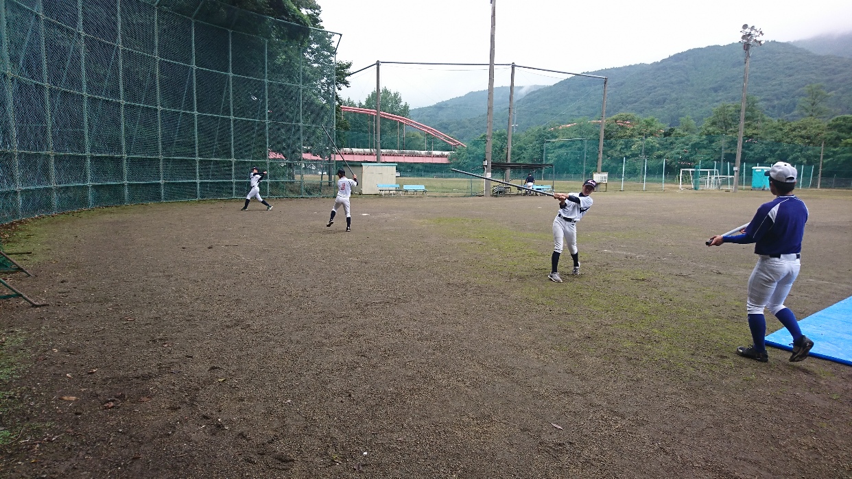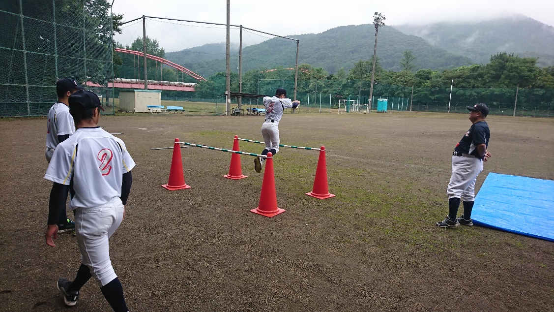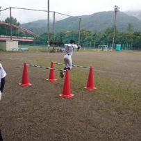 降雨の心配もあり一日練習から半日練習へ短縮。塾長からも雨男がいるのかと心配されましたが、無事に最後まで出来ました。 3名での練習でしたが、本日もOBの先輩に手伝ってもらい、先輩も現役生同様のメニューをこなしてくれました。 本日はバッティング理論。バッティング理論を理解しながら、身体の使い方をみっちりと指導して頂きました。 そして最後はパワー走。3人で励ましあいながら走り切りました。