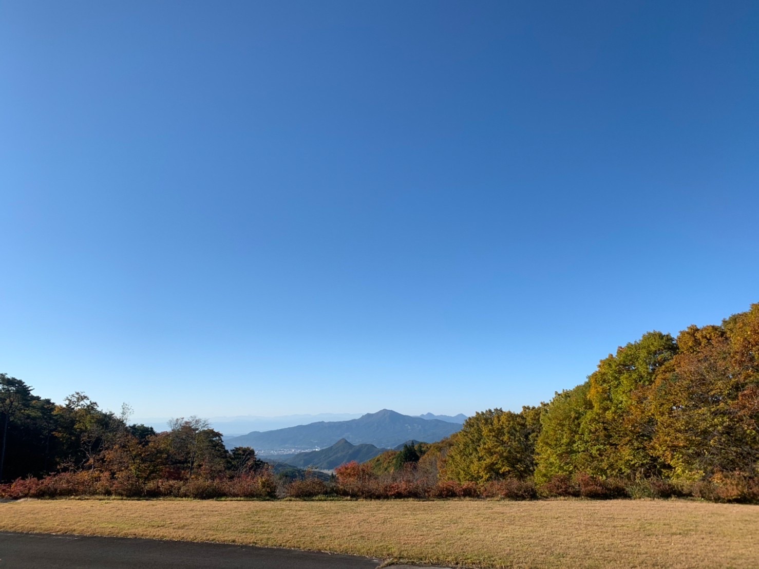 照れているかの様な表情(紅葉)を見せる山々、それに雪化粧をした富士山頂をも遠くに見渡せる絶景!!!!