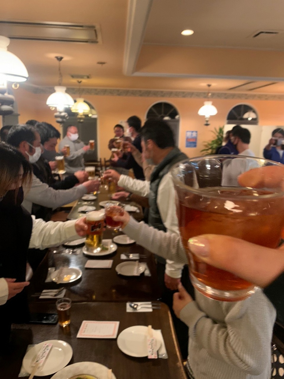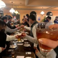 本来なら120%の大きな声を出し「かんぱーーい!!」と言いたかったのですが、コロナ禍ですので、皆さん60%程の控えめな乾杯。