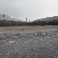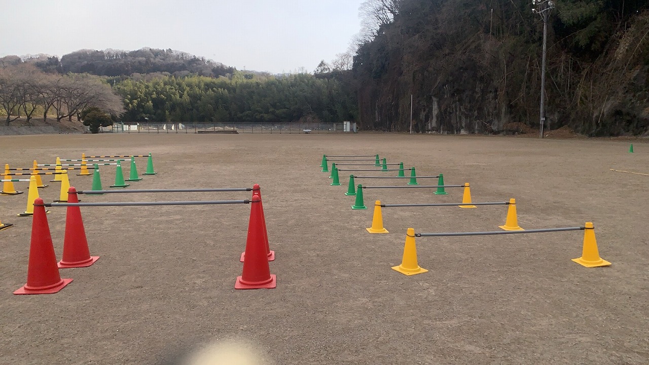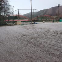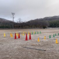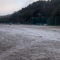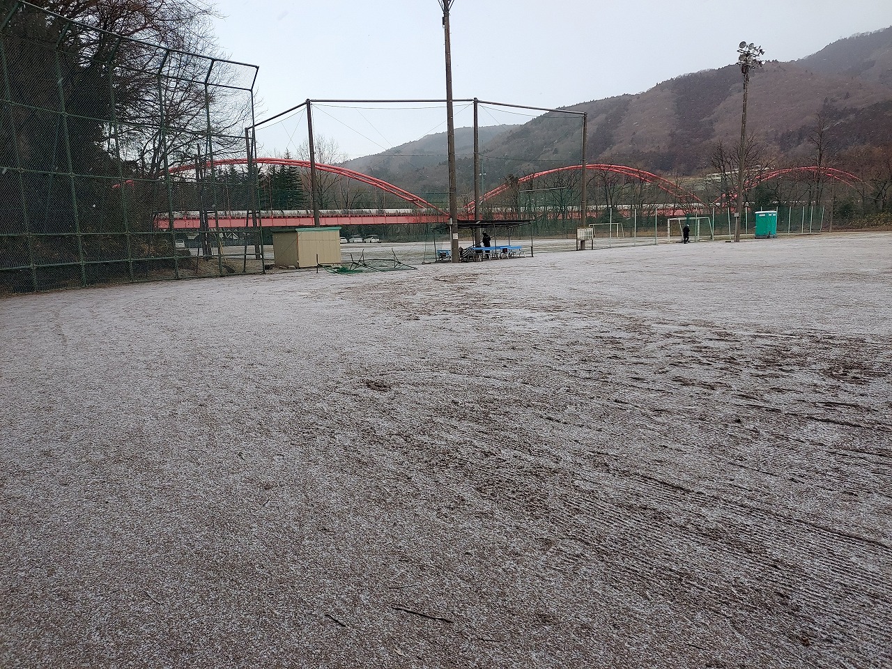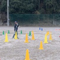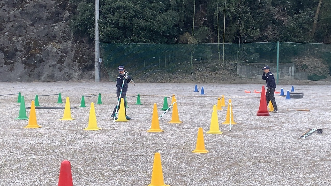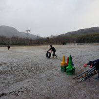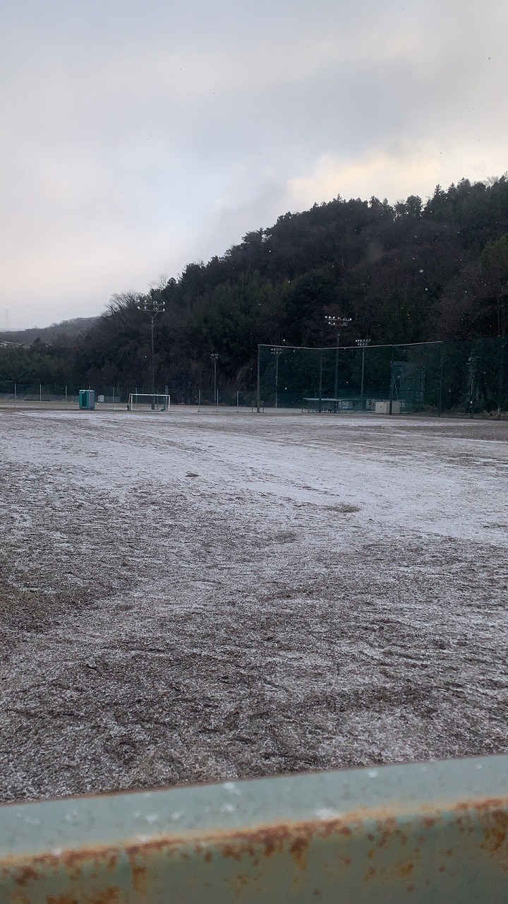 先週とは打って変わって、まさかの雪。グランドにはうっすらと雪が積もっていました。事前練習は室内で行いました。
