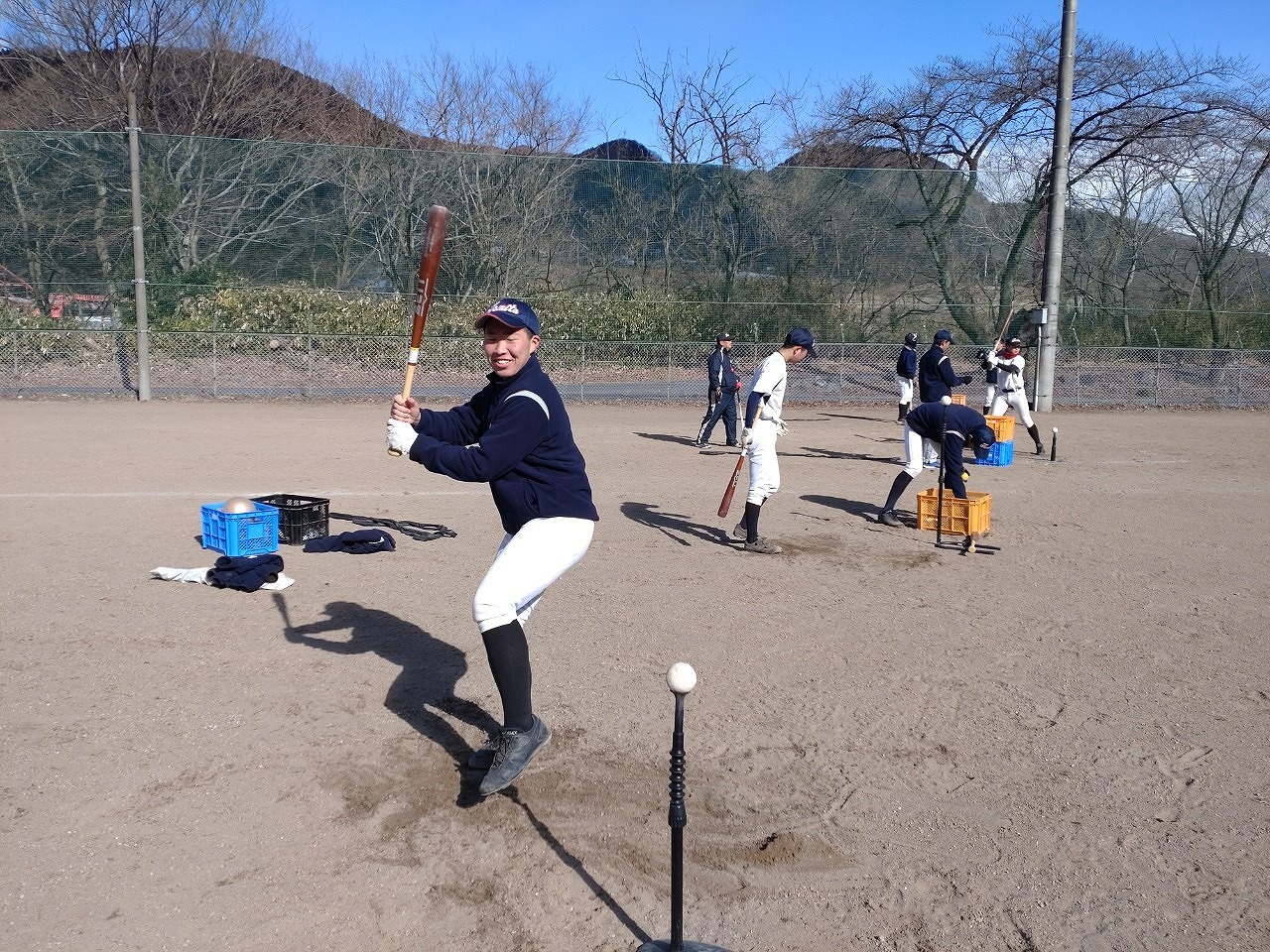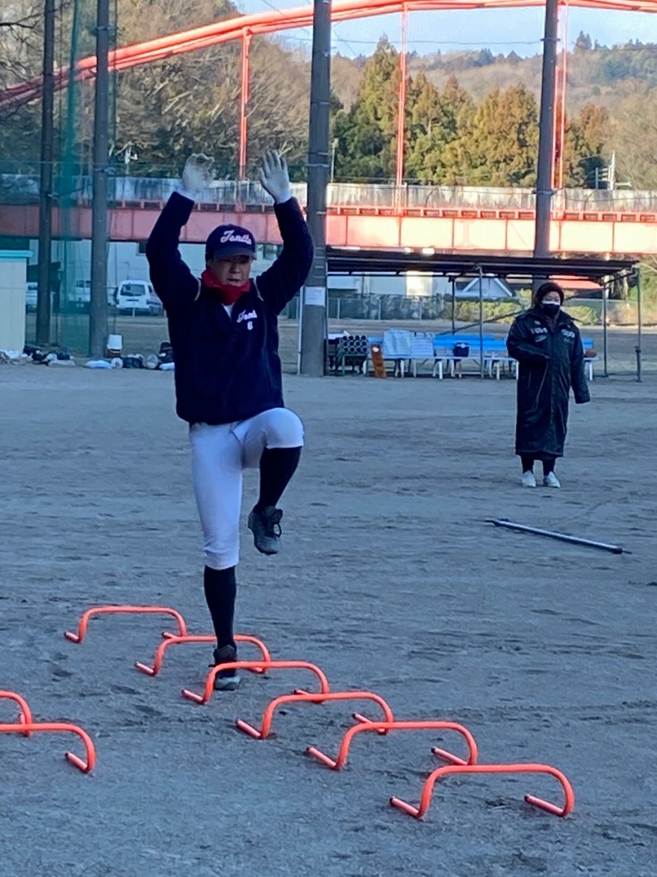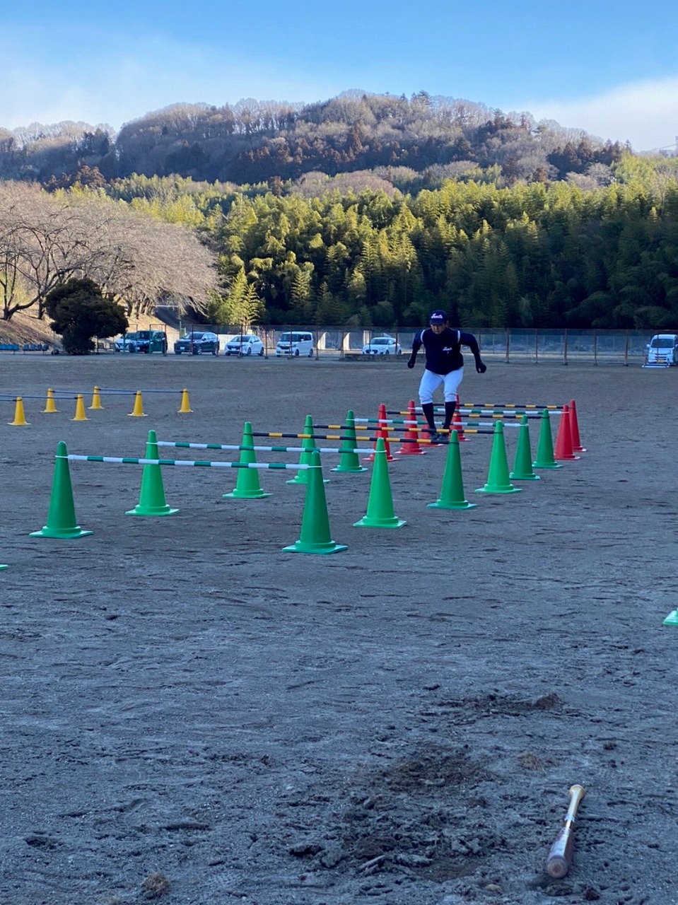 前日は春一番も吹き、春を感じたのに赤城第2グランドは歩けばザクザクと音が鳴る…残念、まだ冬でした。
